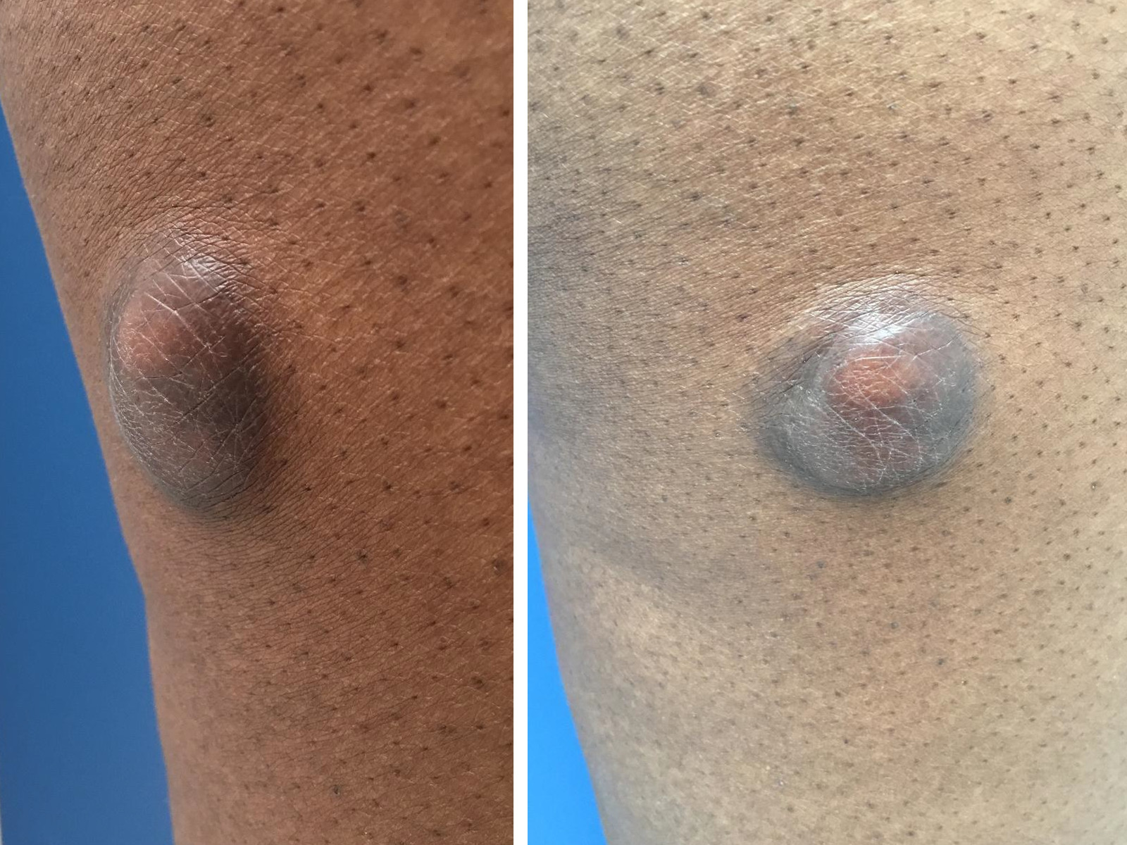 of de diepte in, lijkend op een dermatofibroom. Er bestaan ook plaque-vormen,
