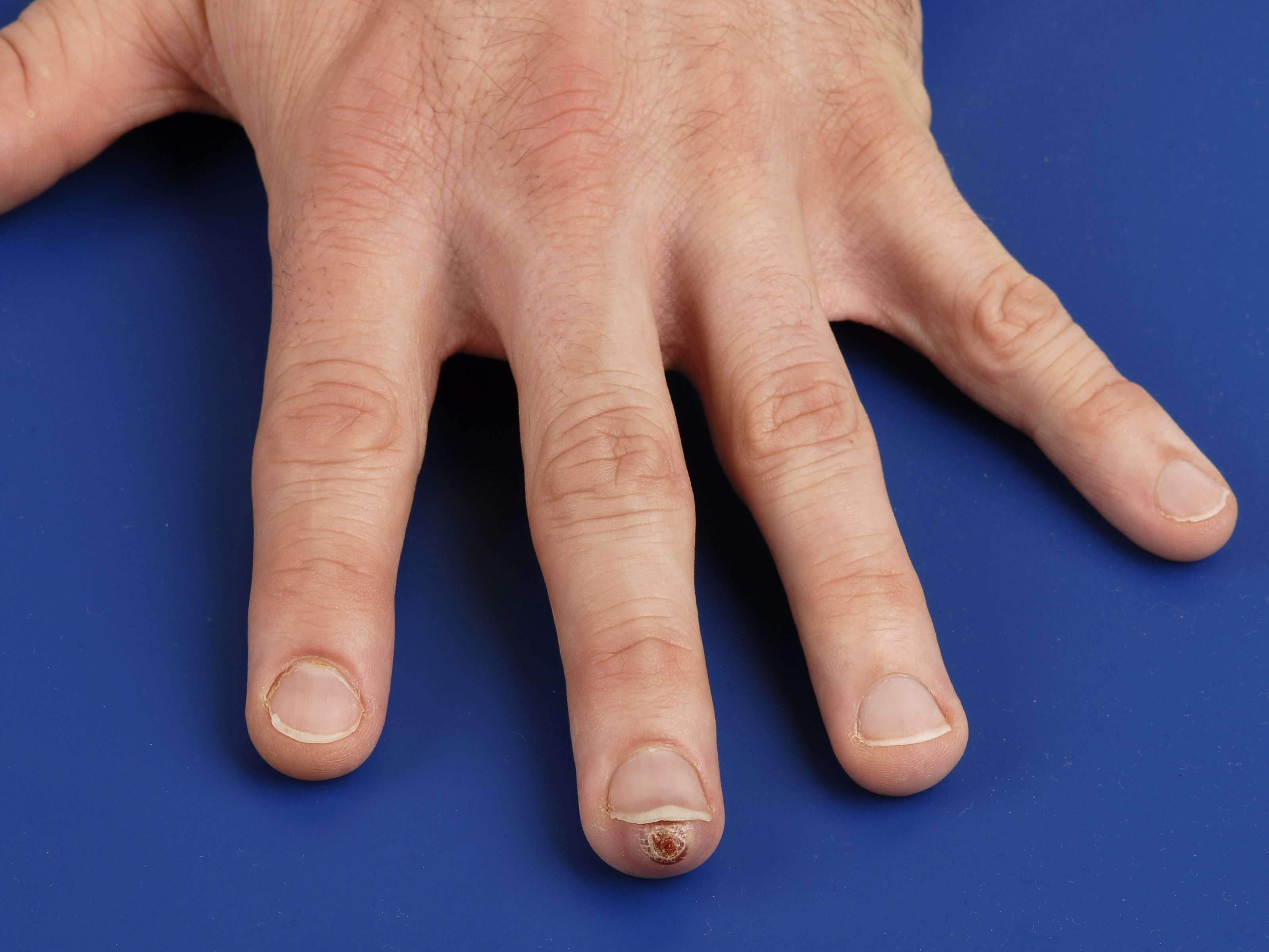 0.08 per 1 miljoen personen per jaar), met als voorkeurslokalisatie de vingers,