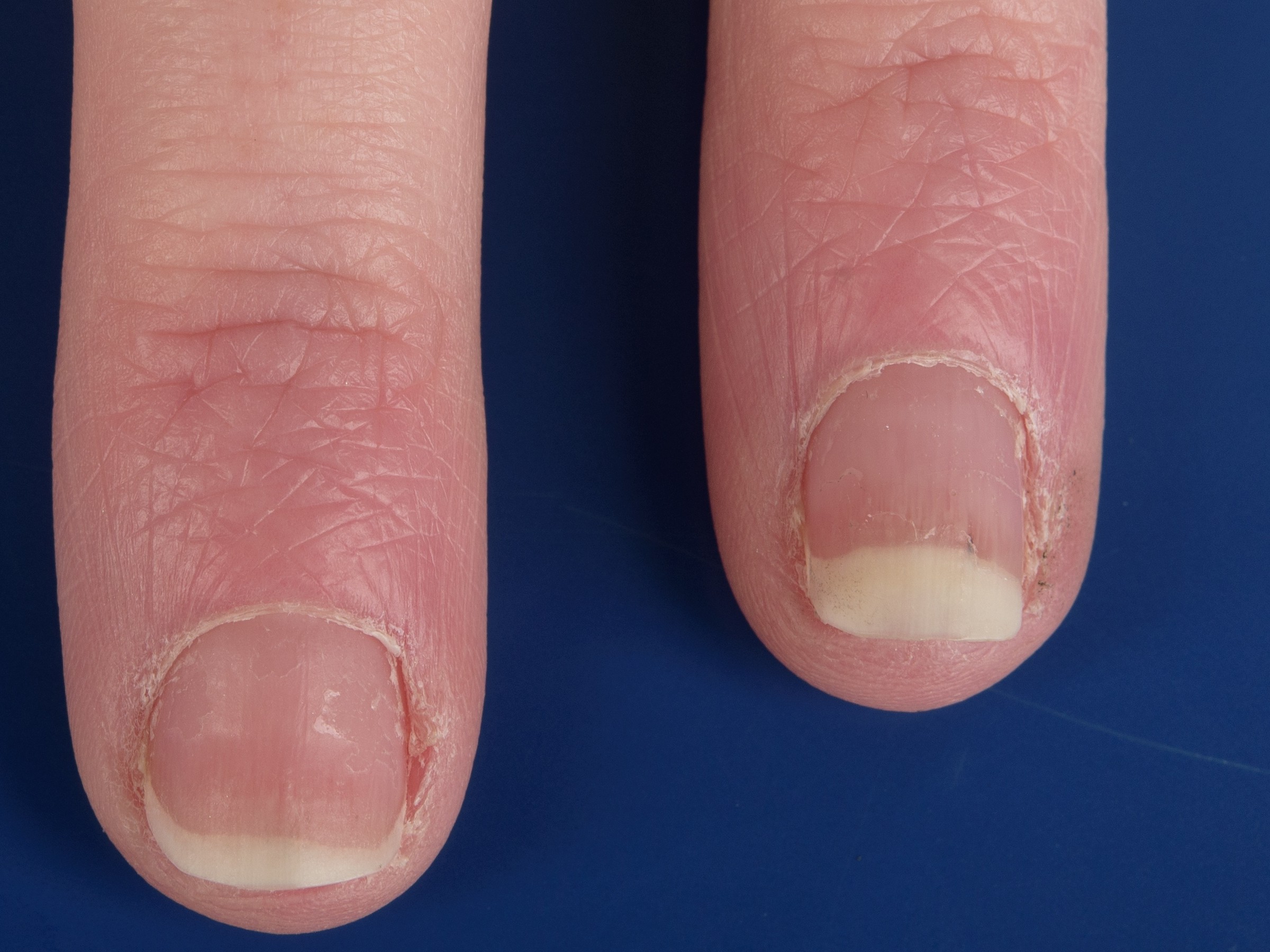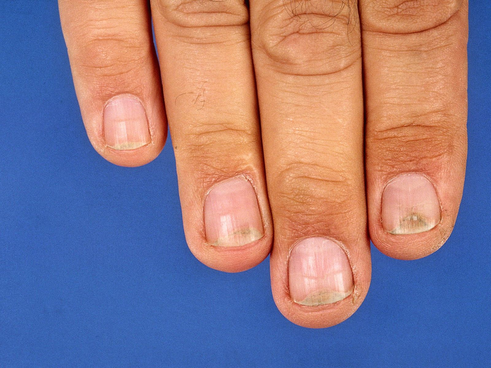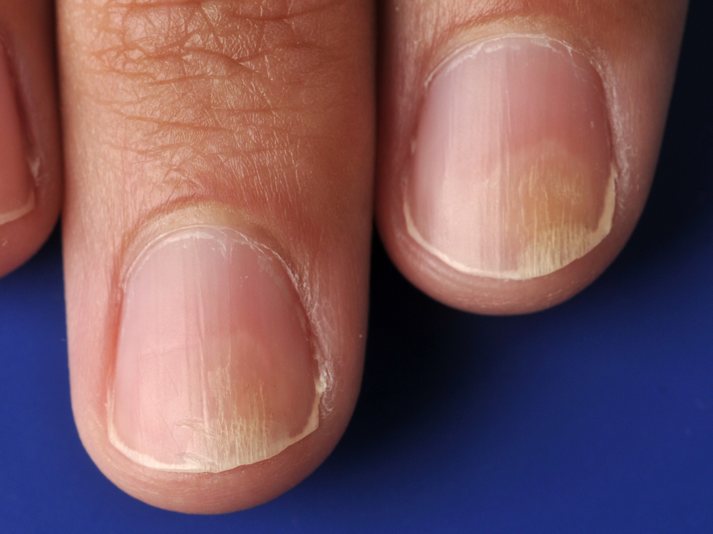 | psoriasis pityriasis rubra pilaris alopecia areata m. Darier eczeem lichen planus m. Reiter onychomycose andere infecties scabies morfea hydroa vacciniforme geneesmiddelbijwerking fototoxische reacties porfyrie Kindler syndroom Bazex syndroom graft versus host disease Sezary syndrome Witkop-Brearley-Gentry syndroom schildklierziekten vitamine deficiëntie diabetes zwangerschap amyloidose multiple myeloma traumatisch manicure behandelingen langdurige blootstelling aan water chemicaliën incusief nagellak en removers |