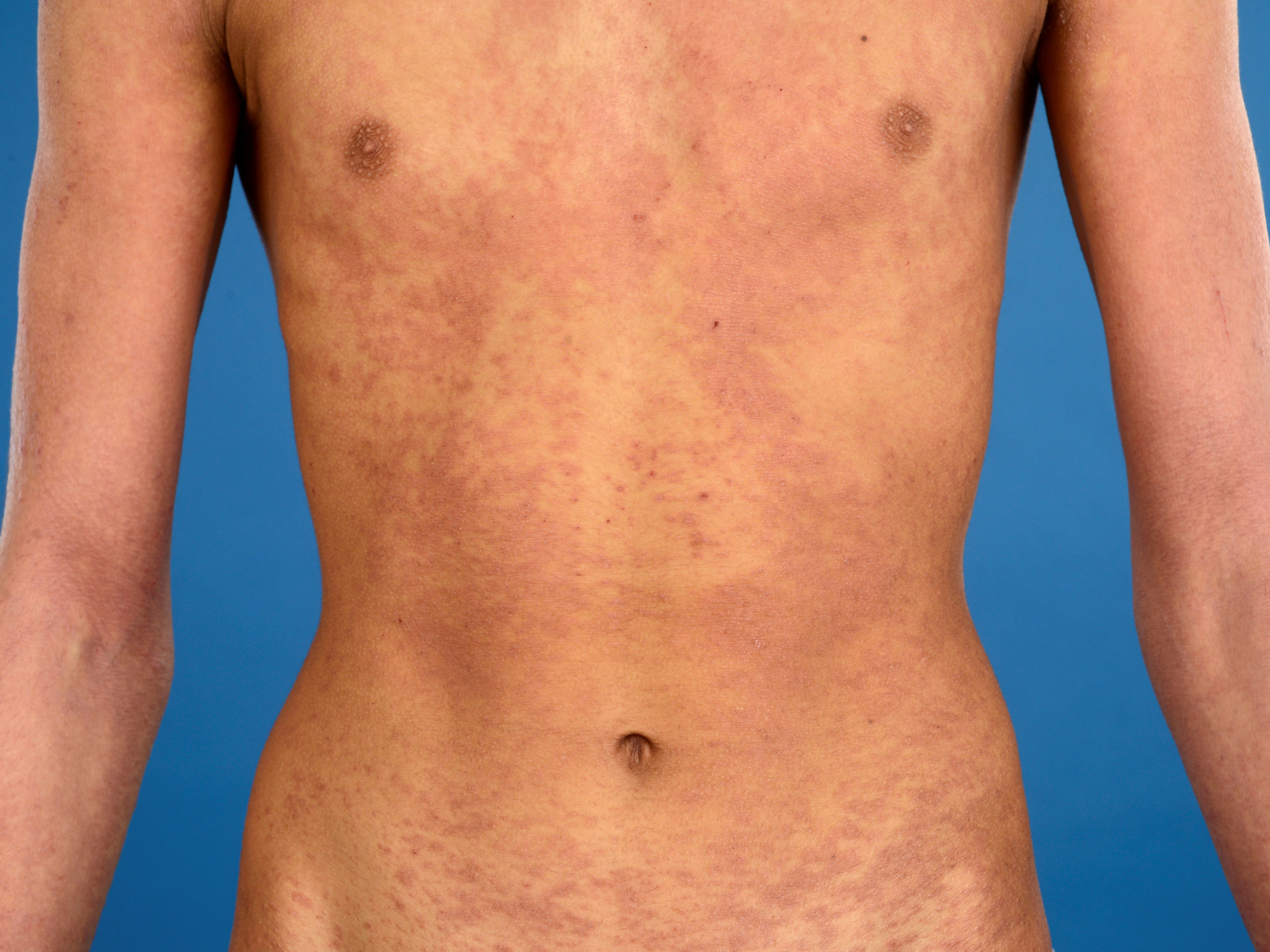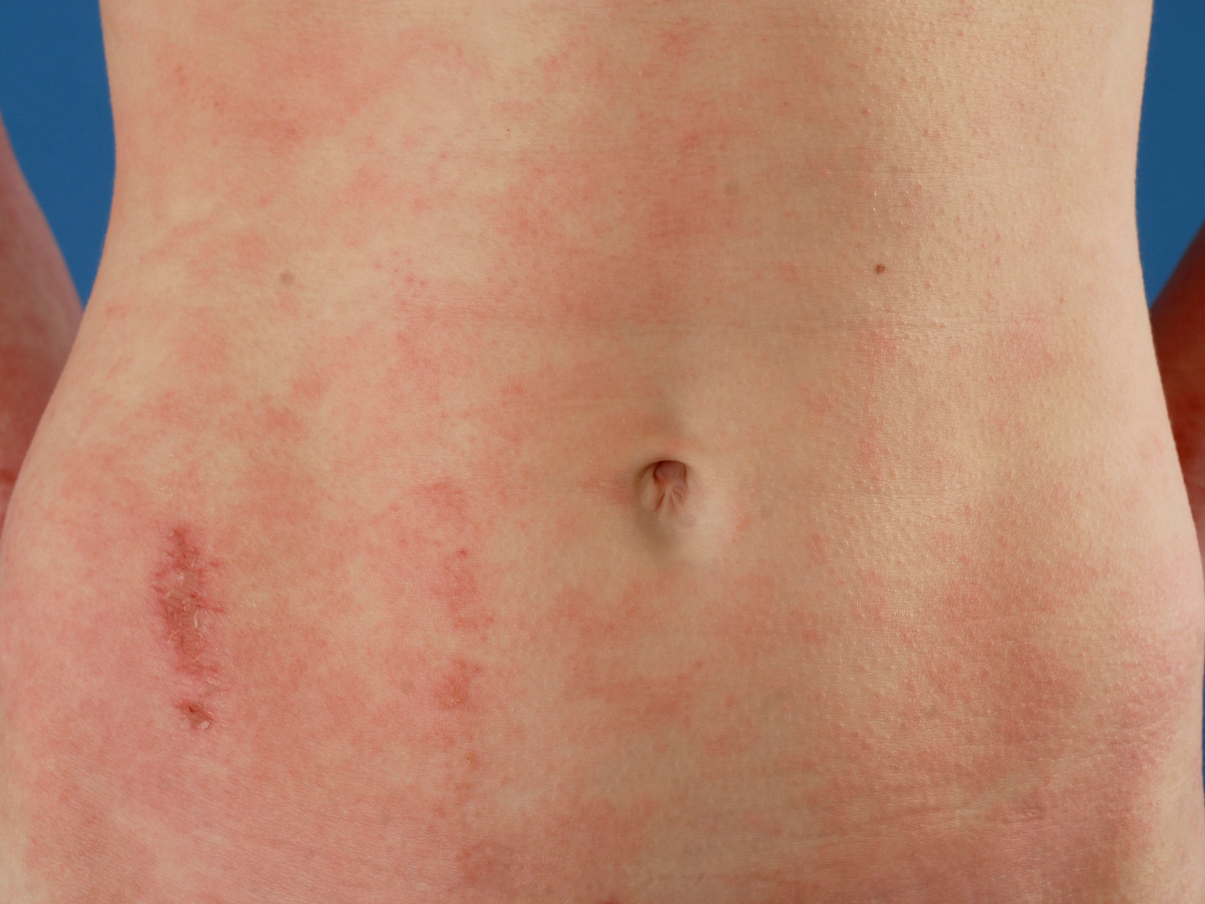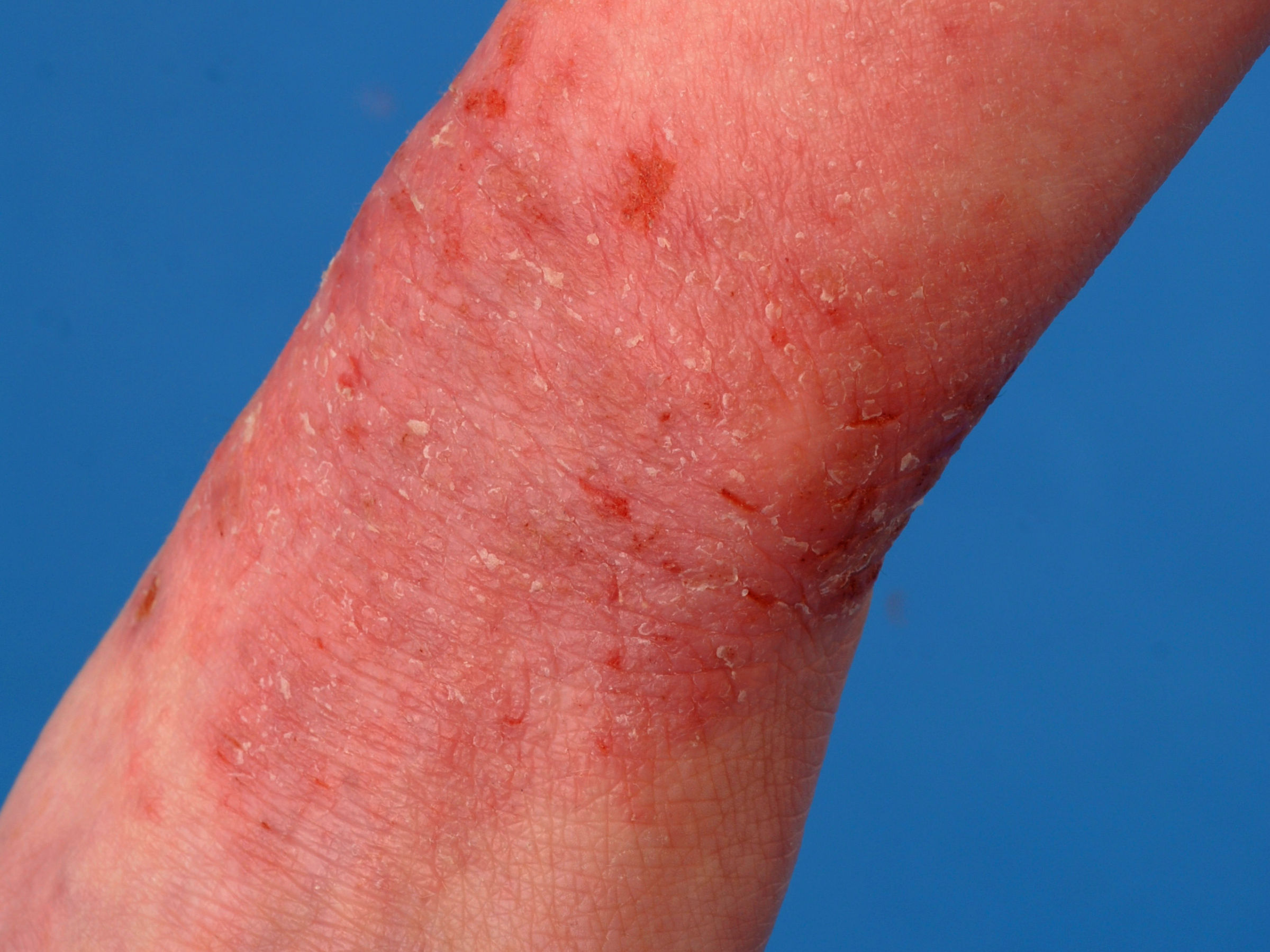 romp, extremiteiten; nattend, crusteus, jeukend. Juveniel: elleboogplooien,