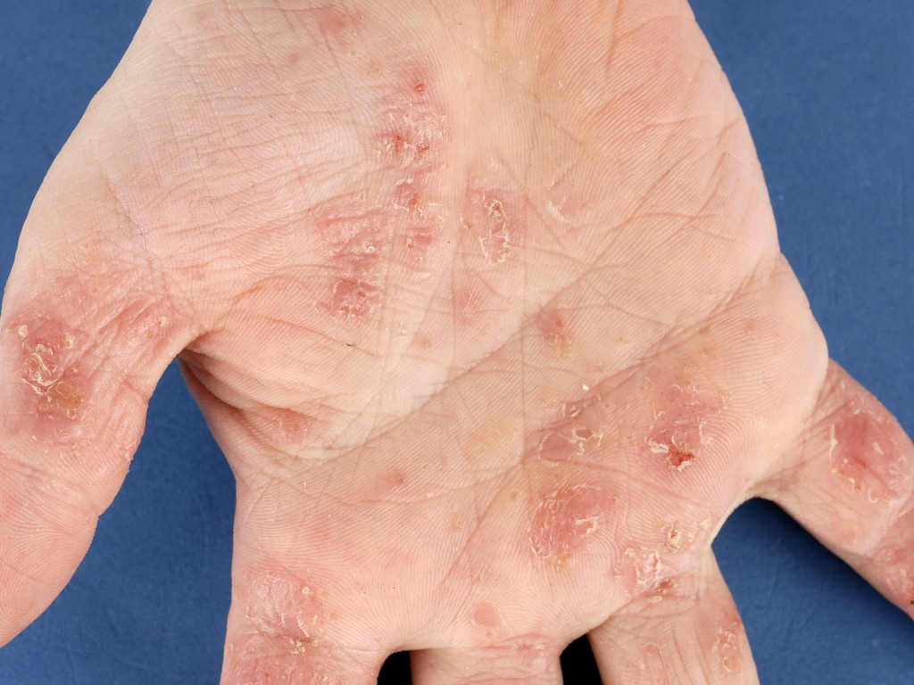 Bij eczeem met blaasjes en blaren komen ook regelmatige
