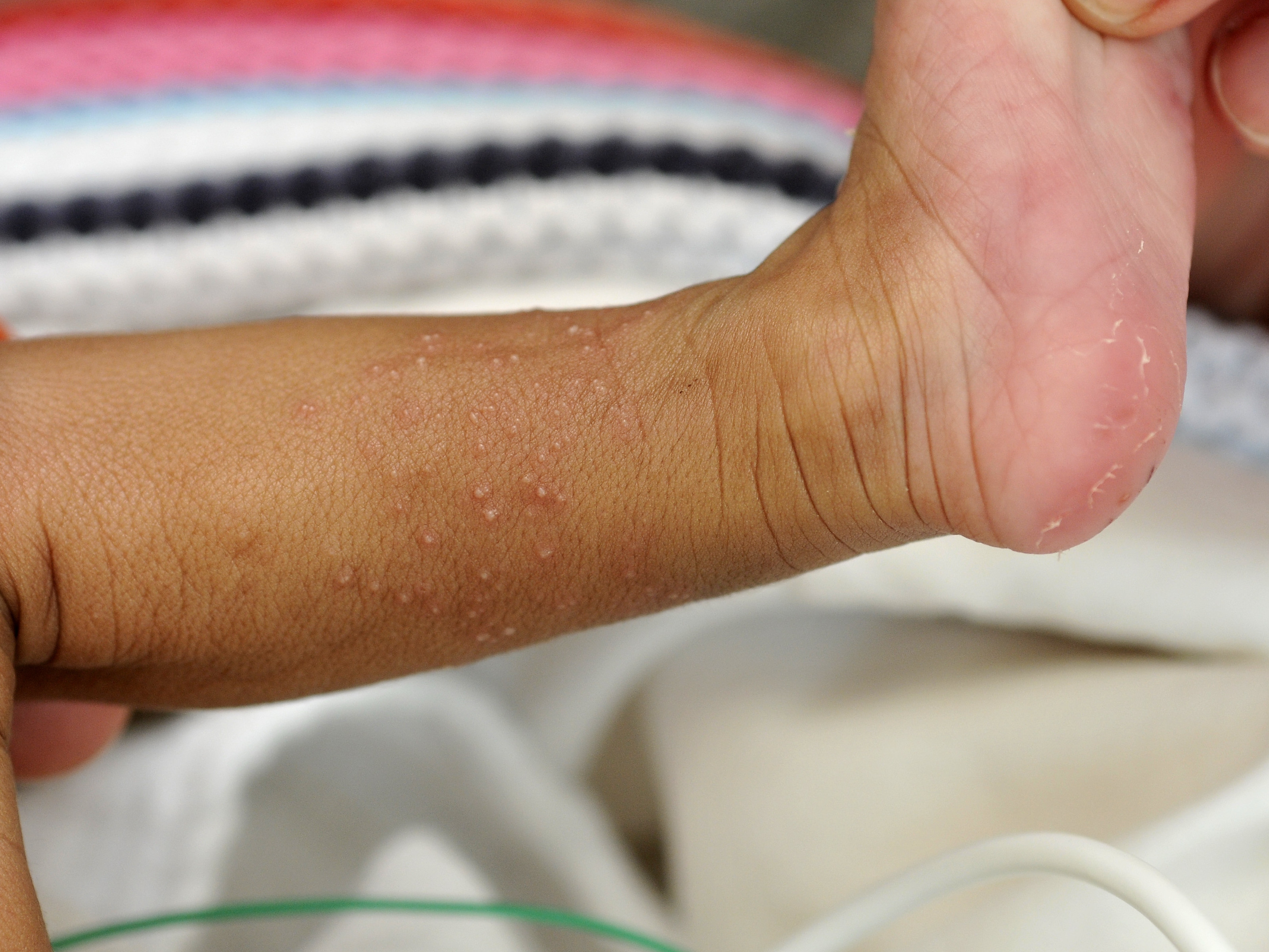 Erythema toxicum neonatorum is een goedaardige, vaak
