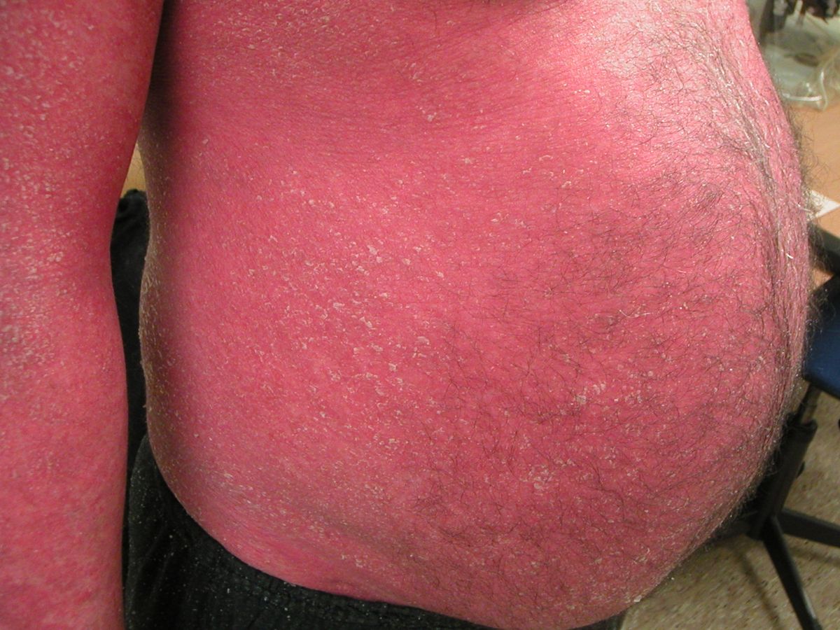 huid. Als de huid over een groot oppervlak rood (en schilferend) is, dan ontstaan