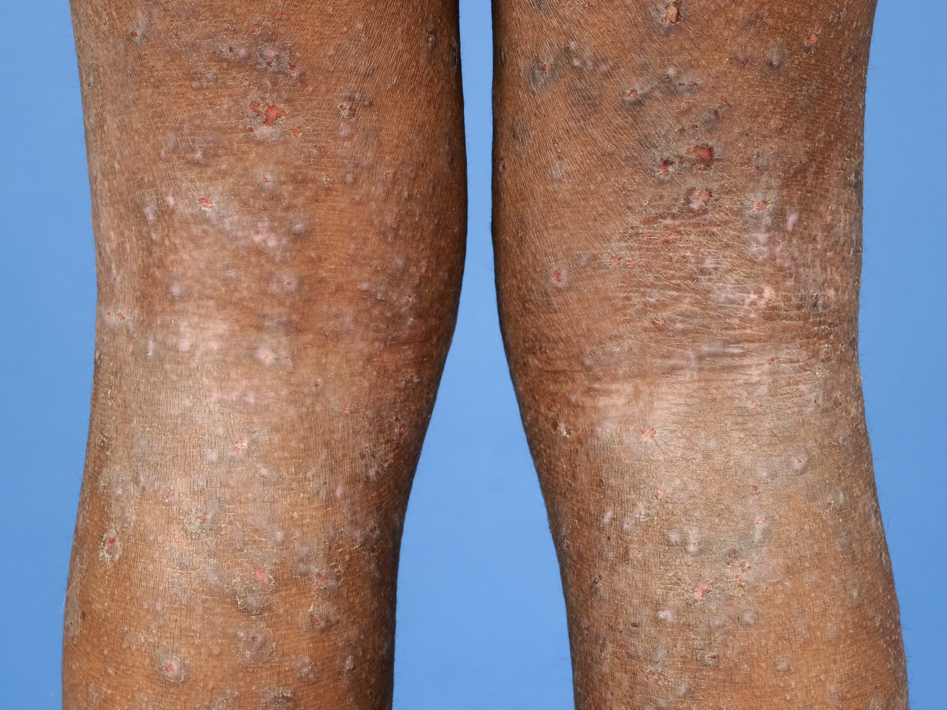 crusta, schilfers, lichenificatie; onregelmatig begrensd, neiging