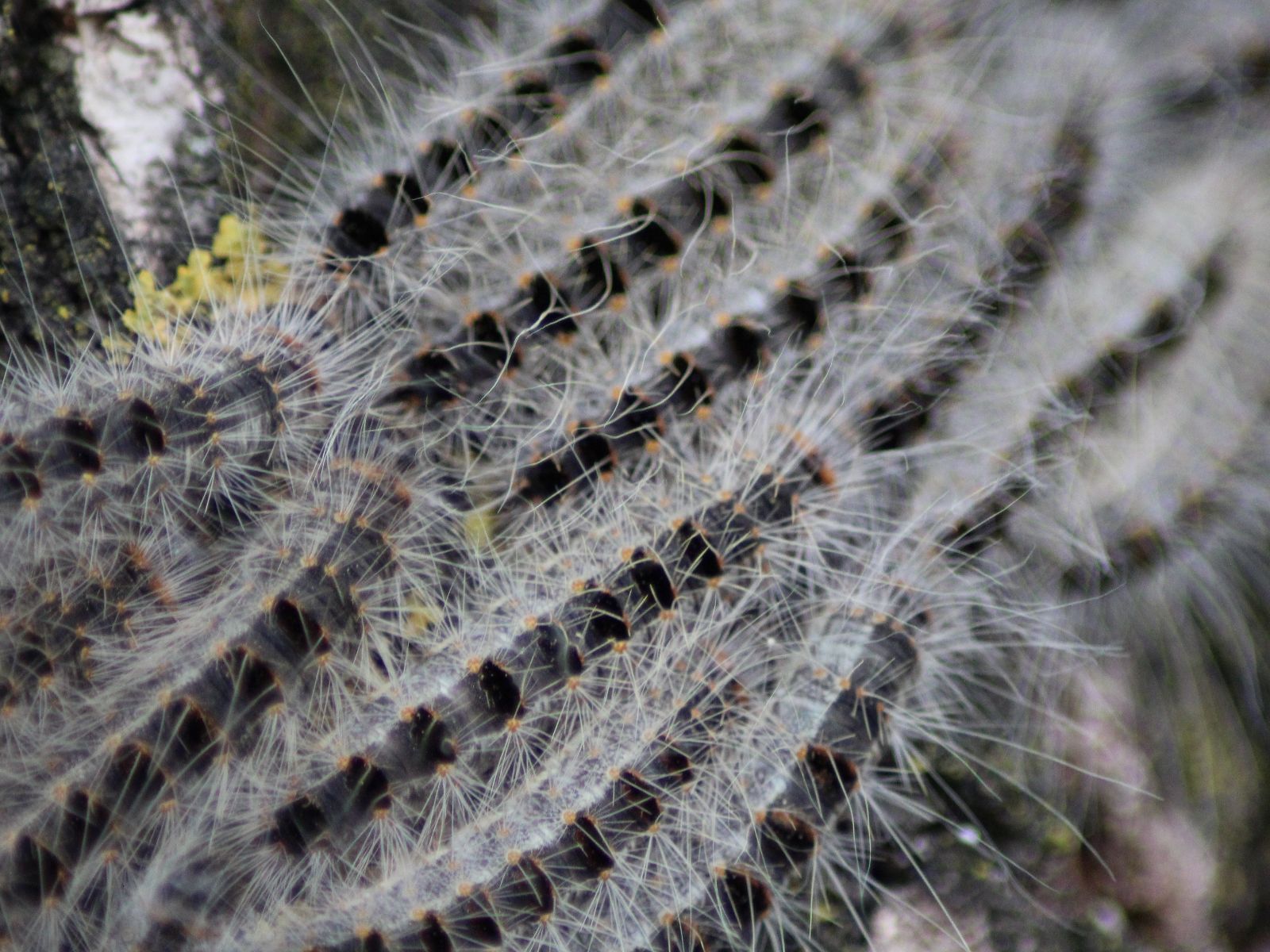 De eikenprocessierups is bedekt met tienduizenden kleine (0.2-0.3 mm)