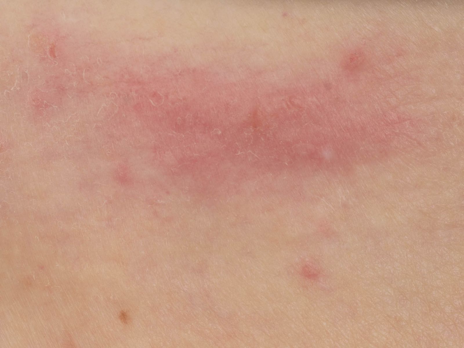 dermatitis, jeuk, branderige pijn/irritatie, papeltjes, vesikels,
