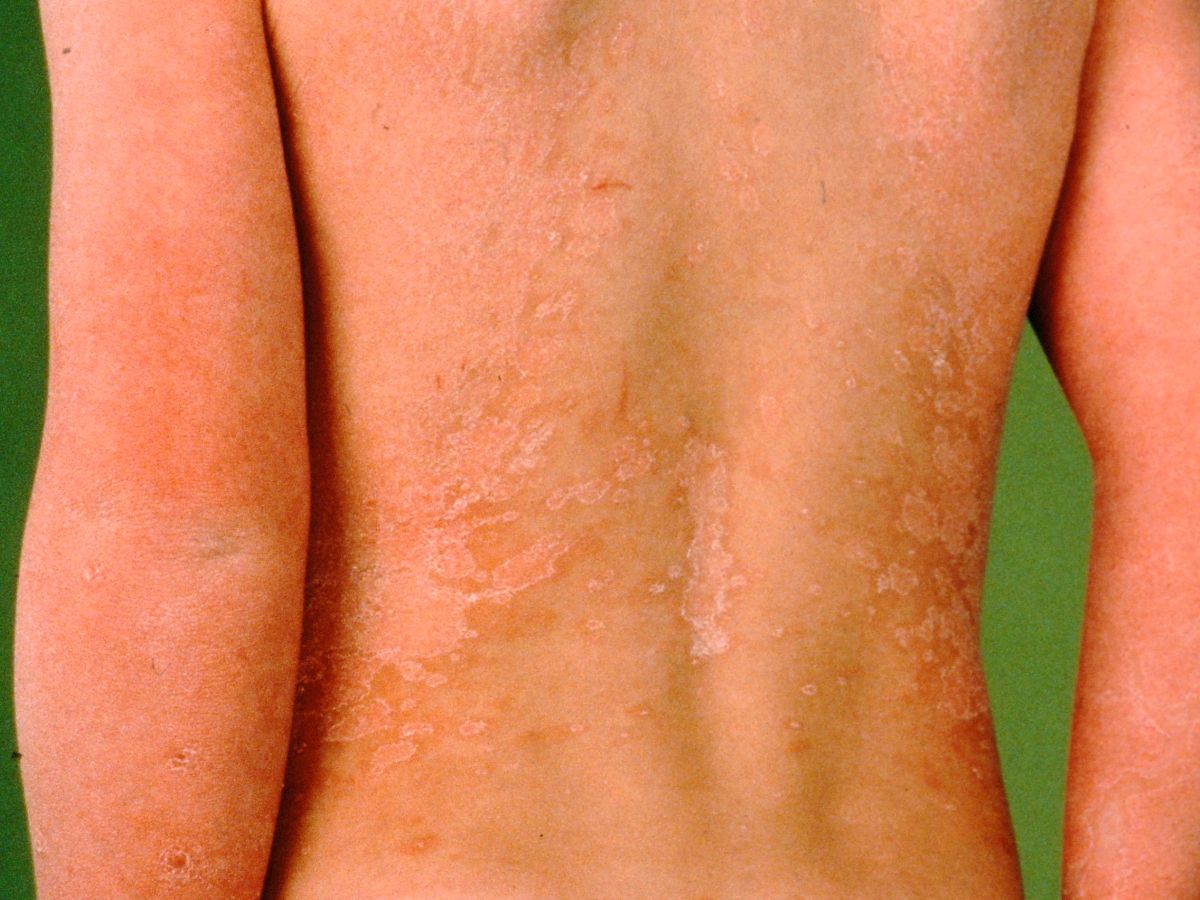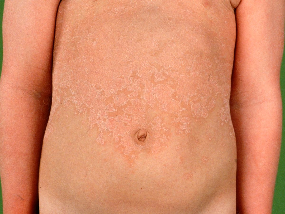 waarbij erythemateuze licht schilferende hyperkeratotische plaques ontstaan,
