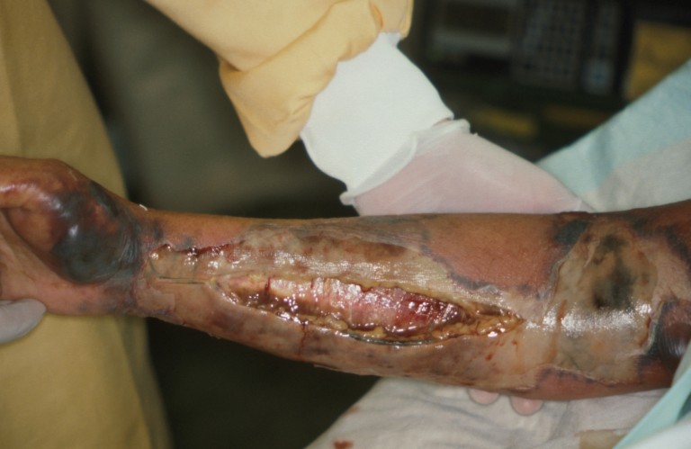 van het dode en geïnfecteerde weefsel is nodig om de toxinenstorm te kunnen