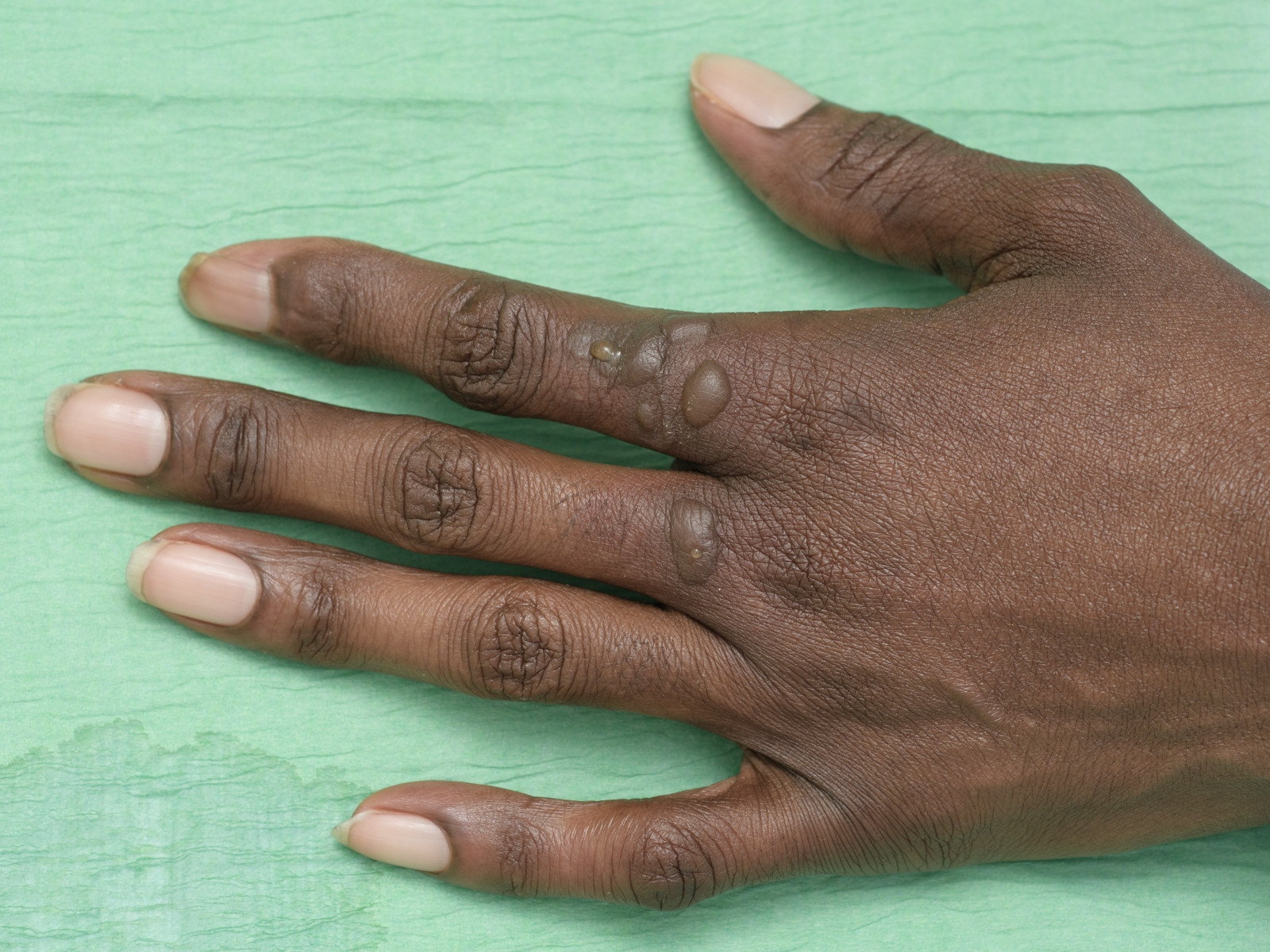 de extremiteiten, handen en voeten, genitaliën (glans penis), perianale regio,