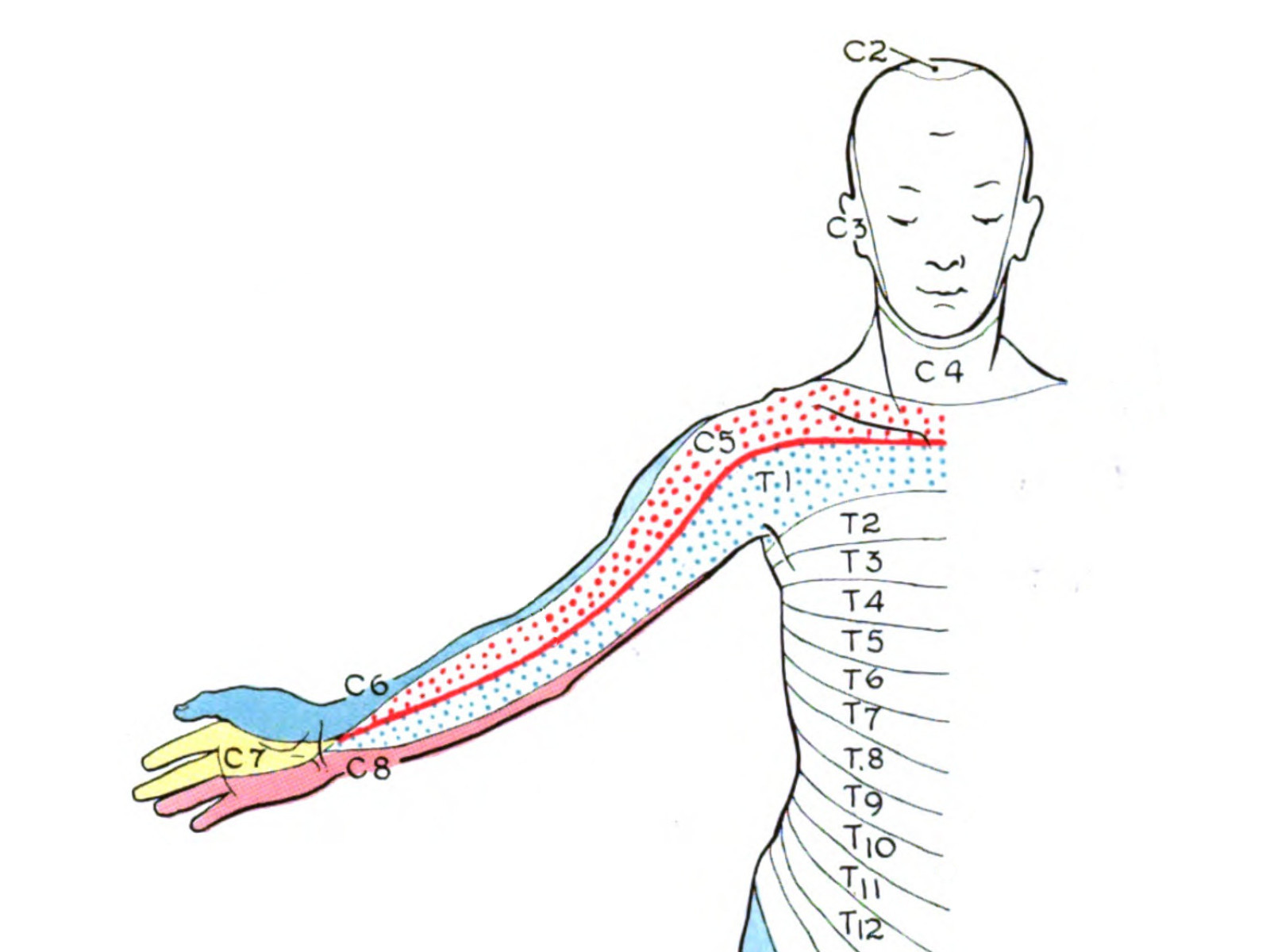 dermatoom T1 en C5). Bij