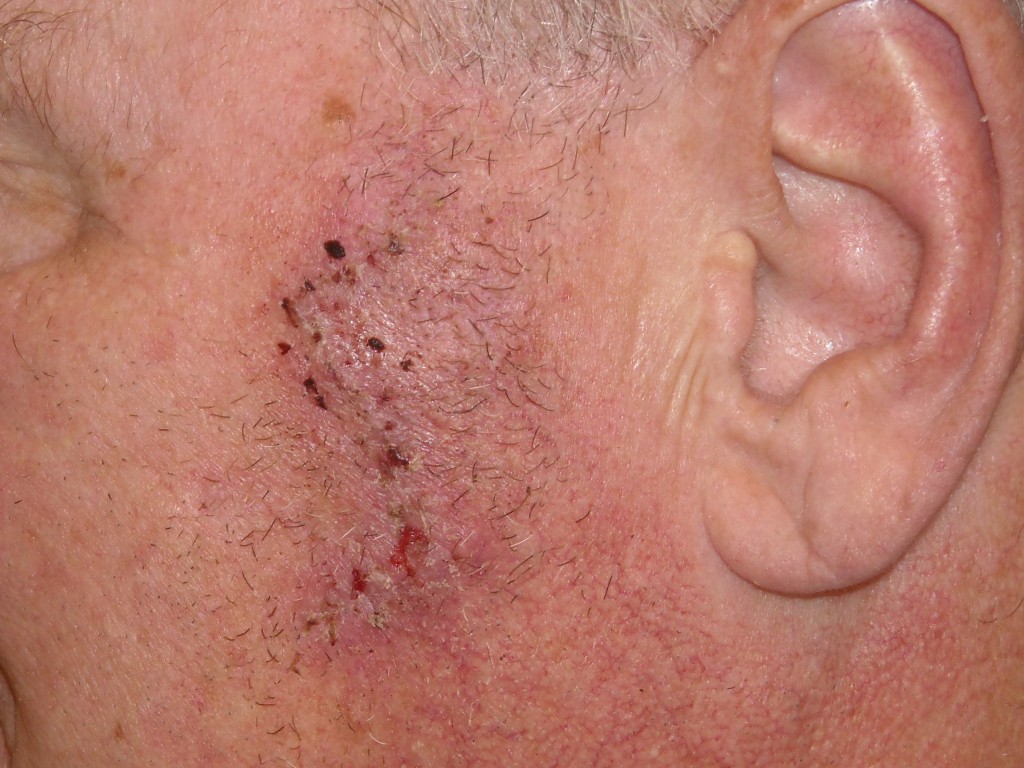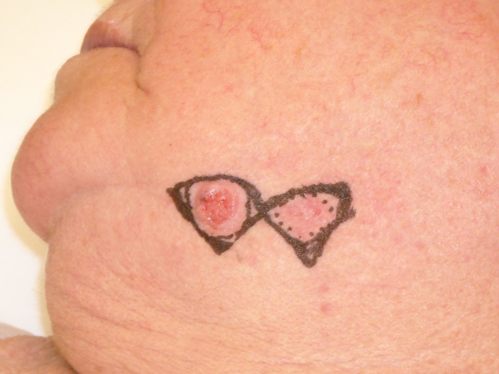 Burow advancement flap bij 2 laesies,