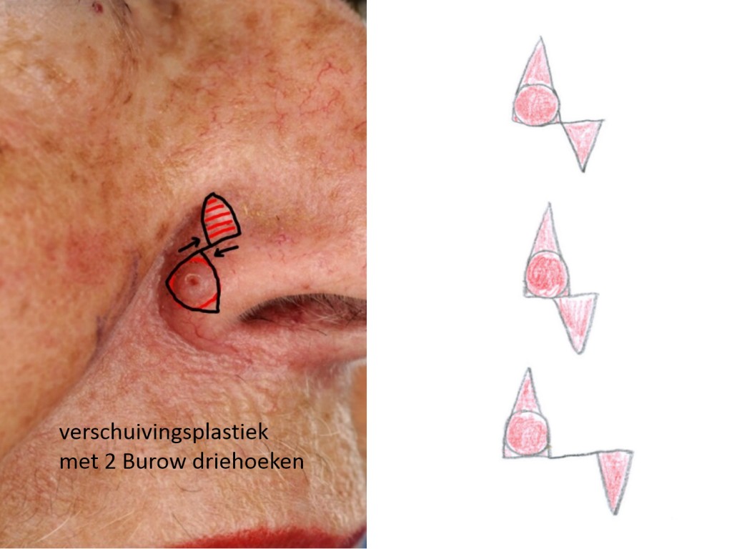 zoals de mondhoek of een neusvleugel. Ook is de plastiek met 2 Burow driehoeken