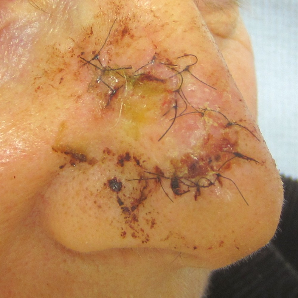 Bilobed flap bij hechtingen verwijderen