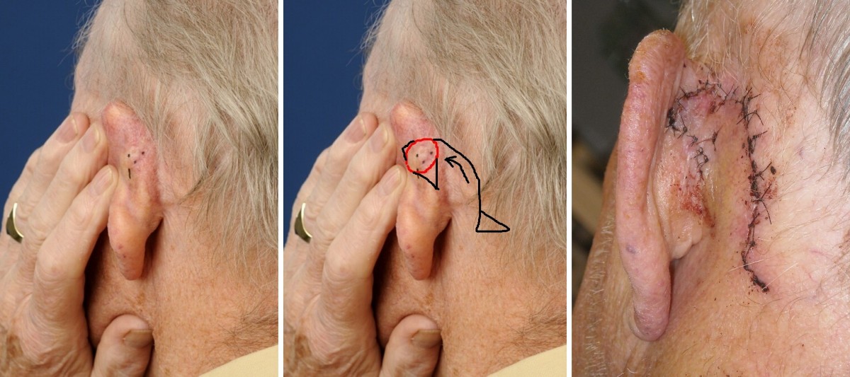 Rotatie flap met back-cut bij basaalcelcarcinoom naast