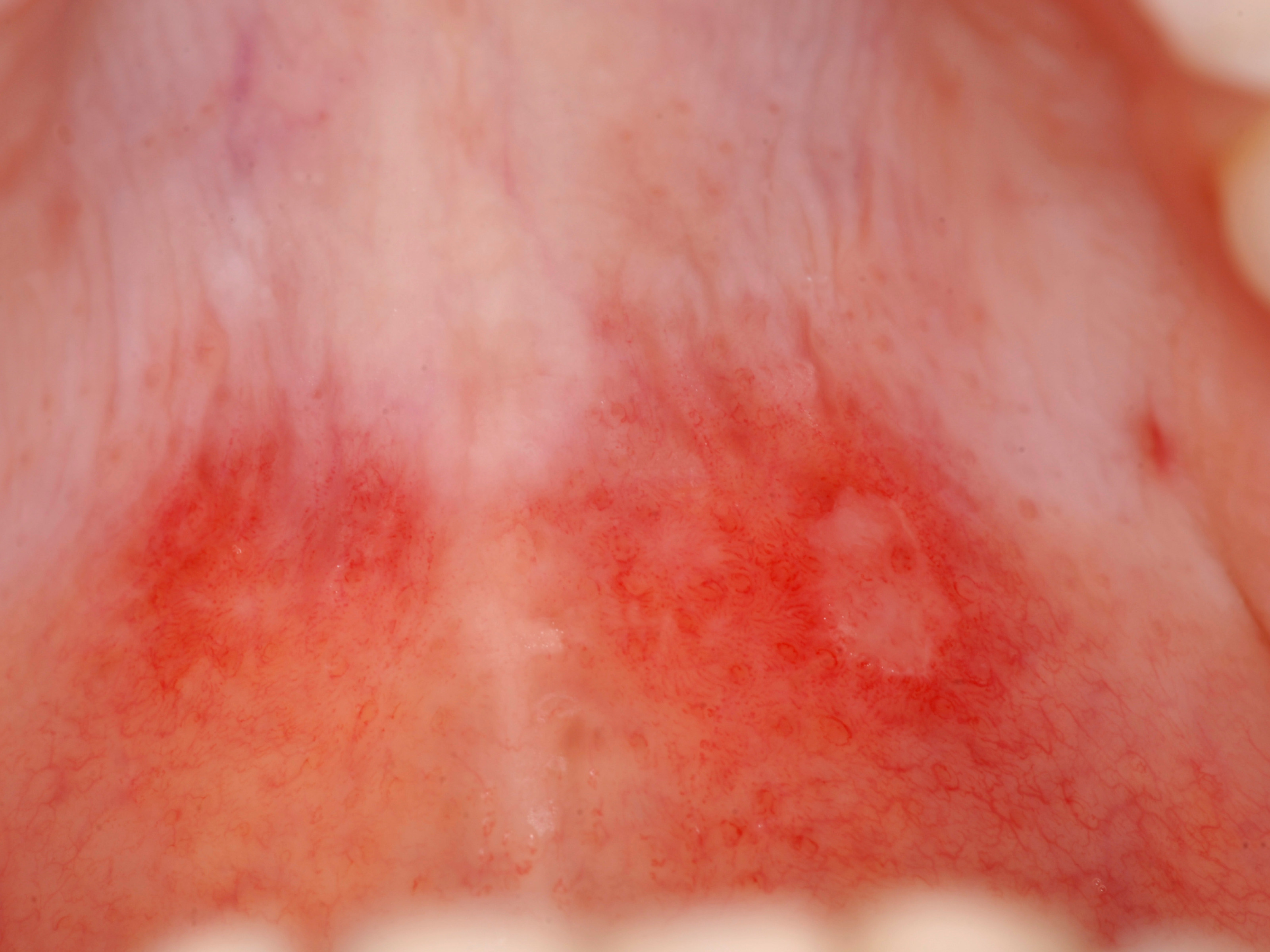afwijkingen die snel overgaan in pijnlijke kleine erosies (meestal harde palatum,