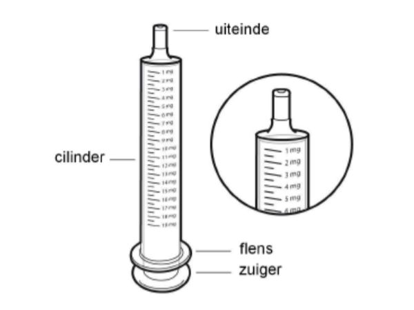 met spuitje of op lepeltje of met 30 cc melk in een aparte fles, en daarna de