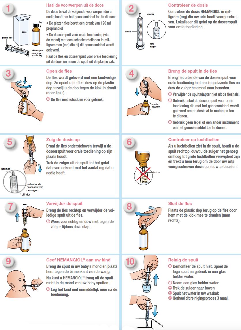- Propranolol laten geven op de flestijden,
