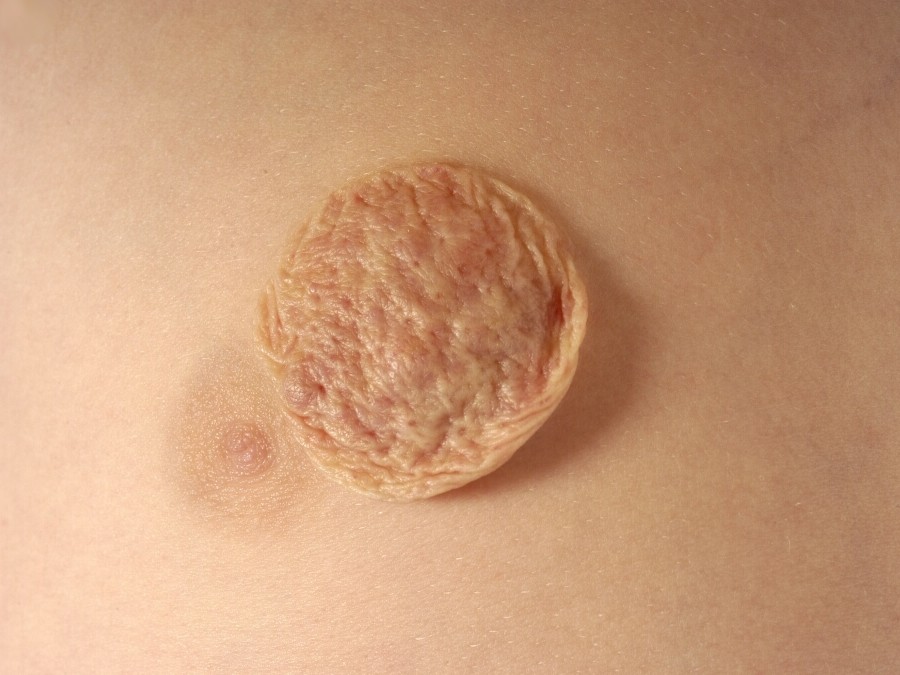 vaak blauwig van kleur, de overliggende epidermis is niet afwijkend (