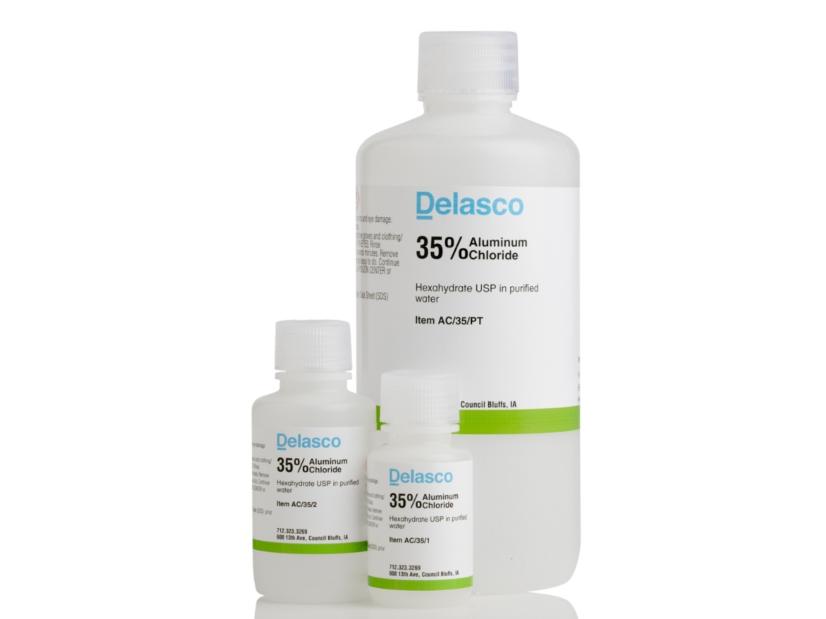 Aluminium chloride 35% oplossing wordt in de VS kant en klaar geleverd voor