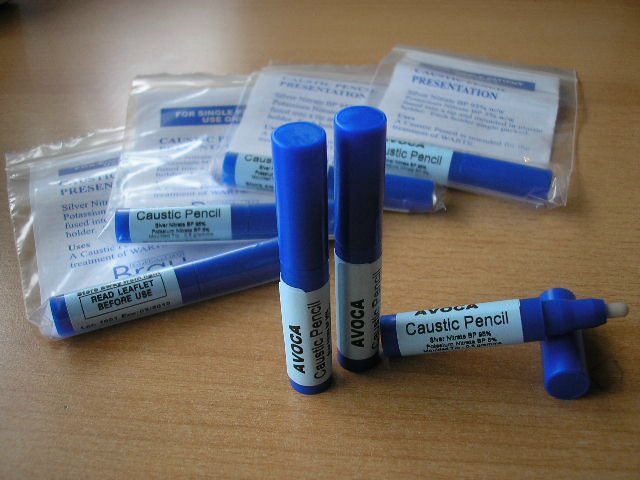 etsende werking op het wondbed en kleurt alles diepzwart. Zilvernitraatstiften