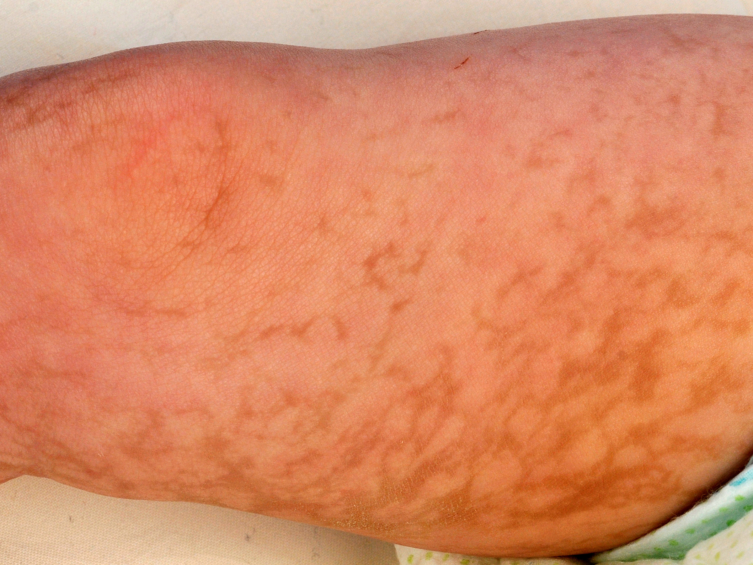reticulaire pigmentatie van het gelaat, onderarmen, voeten,