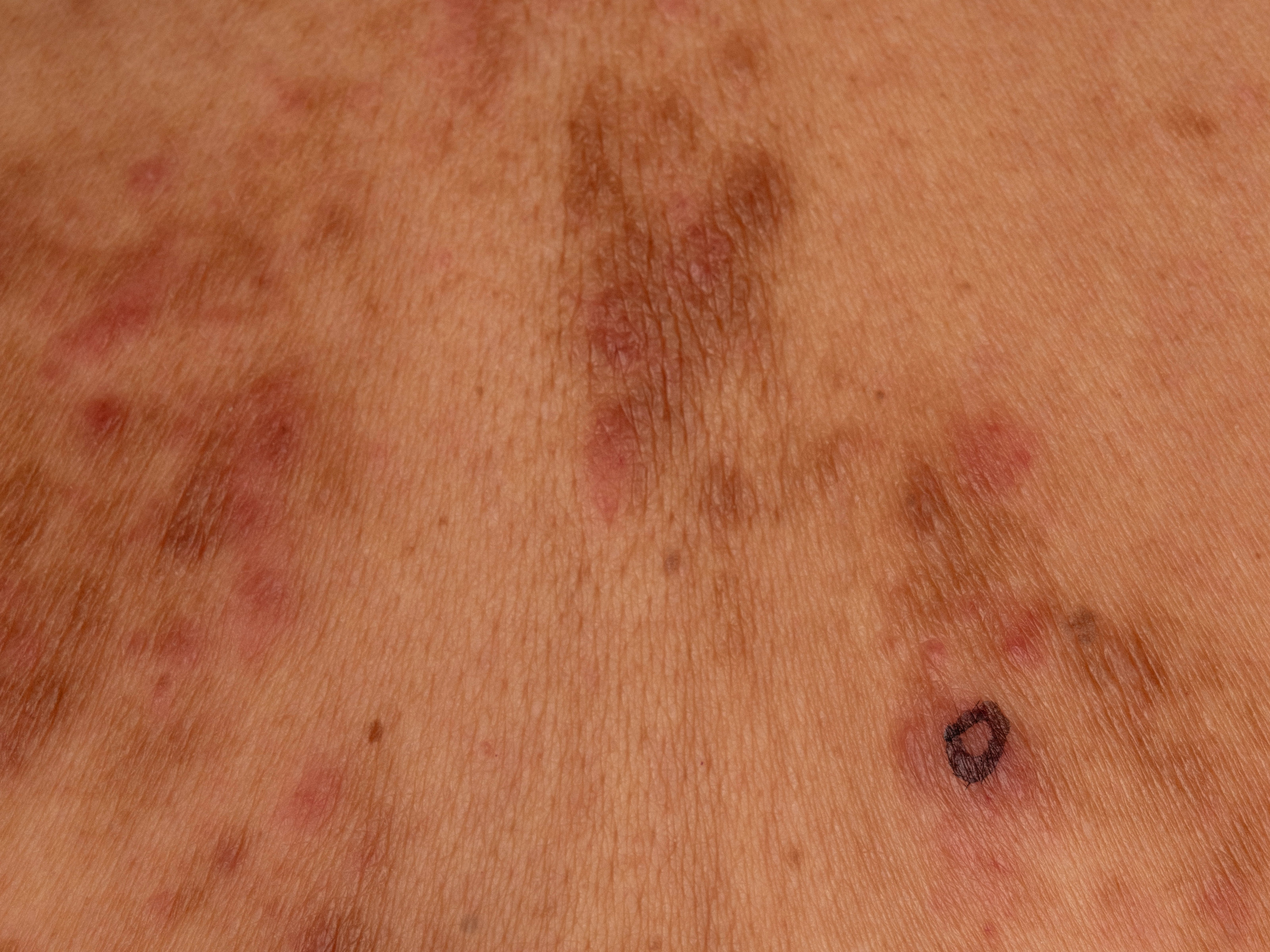 (papels, plaques, noduli) zitten vooral in de hoofdhals regio en op het bovenlichaam,