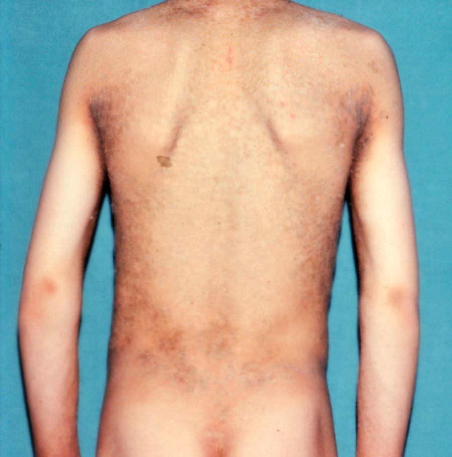 van ichthyosis met dikke, donkerkleurige papillomateuze hyperkeratose (OMIM146590). Er ontstaan