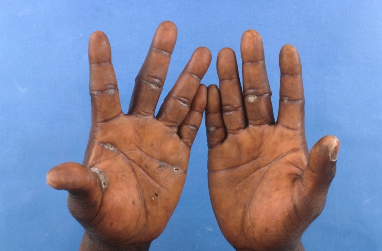 beperkt is tot de plooien in de handpalm en de vingerkootjes. Deze hyperkeratosen