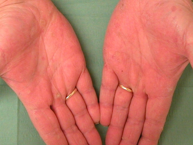 vooral op de extremiteiten hyperkeratotische noduli of plaques ontstaan. Komt