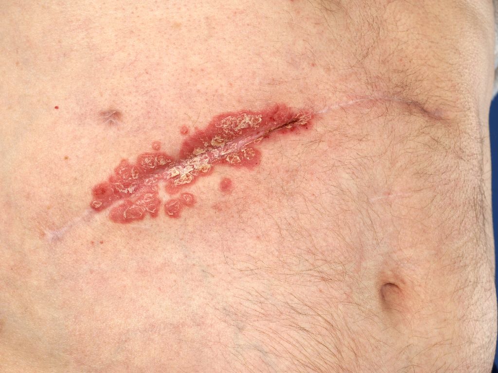 naar plaatsen waar de huid een of ander trauma heeft ondergaan. Dat kan een