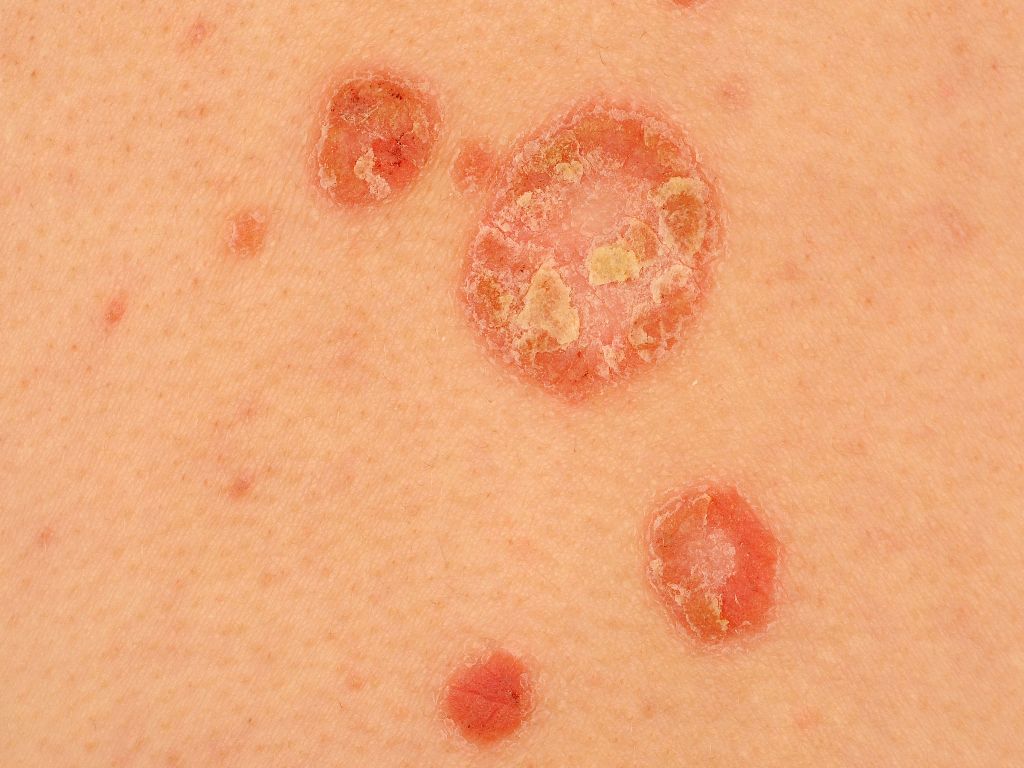 witte schilfering vertoont te onderscheiden van andere erythematosquameuze dermatosen.