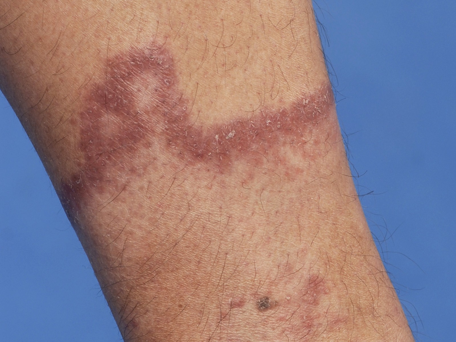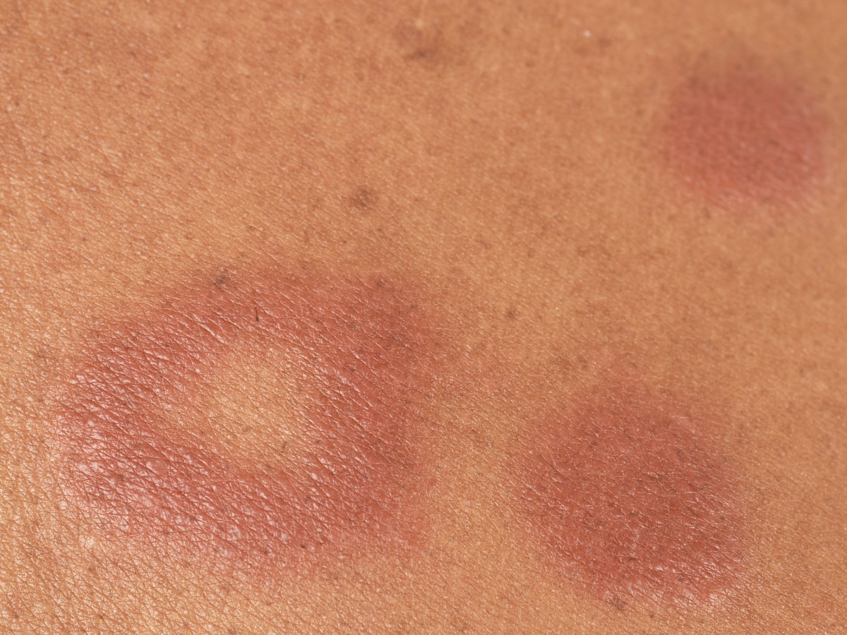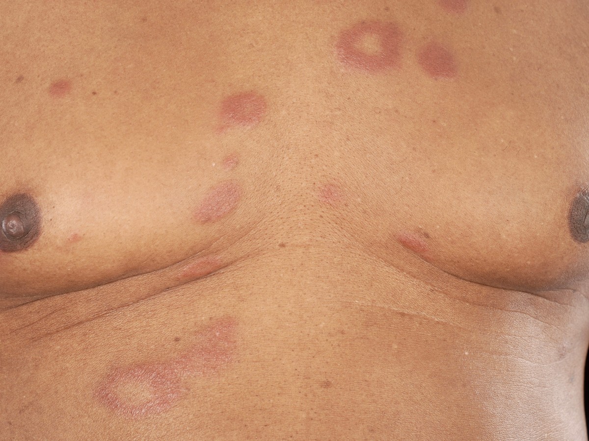 ICD-10 A30.3): multiple annulaire scherp begrensde plaques. In centrum verminderde