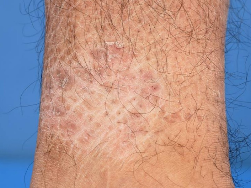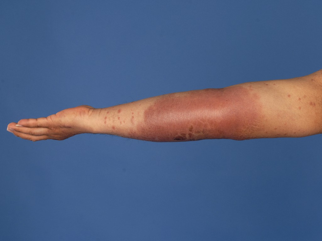 macula, papels en noduli. Licht verminderde sensibiliteit. Uitgebreide symmetrische