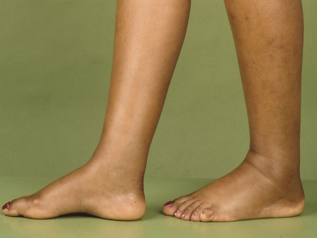 met dikke zolen worden gedragen of speciale orthopedische schoenen worden aangemeten