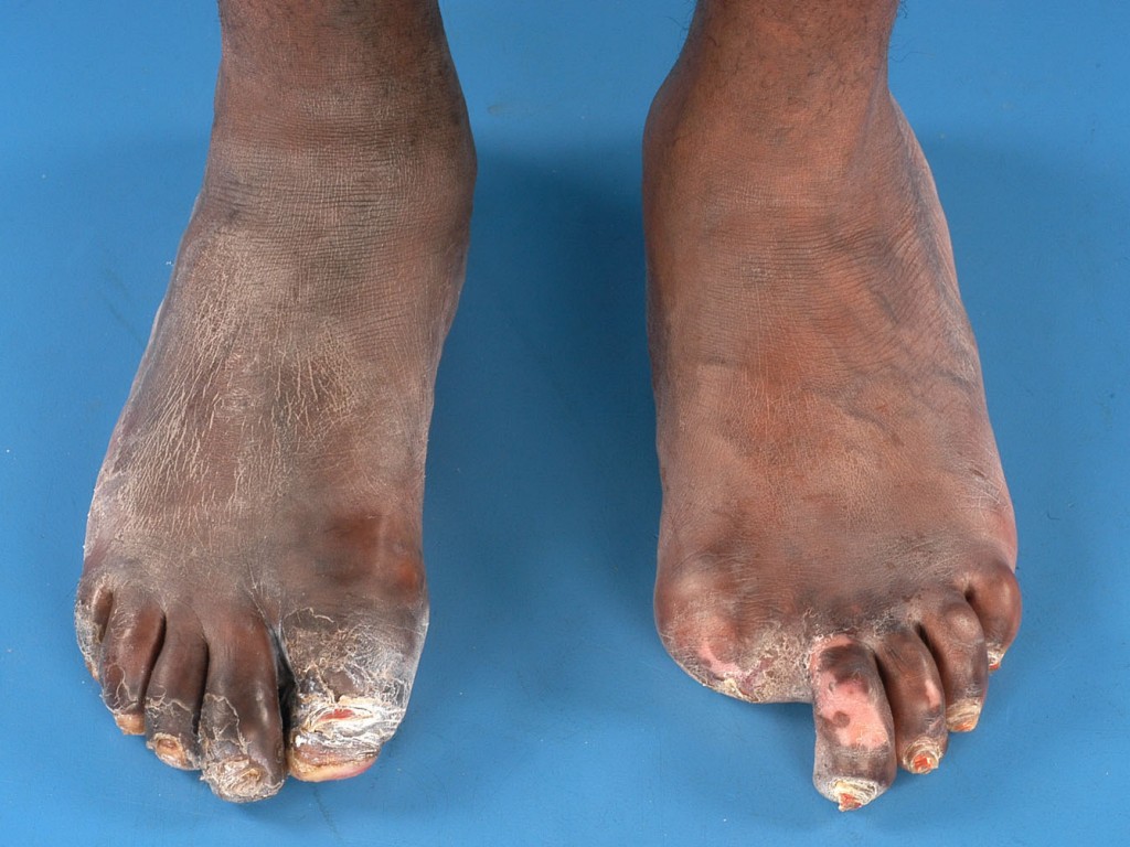 Vaak moeten tenen en vingers worden geamputeerd vanwege infectie en osteomyelitis.