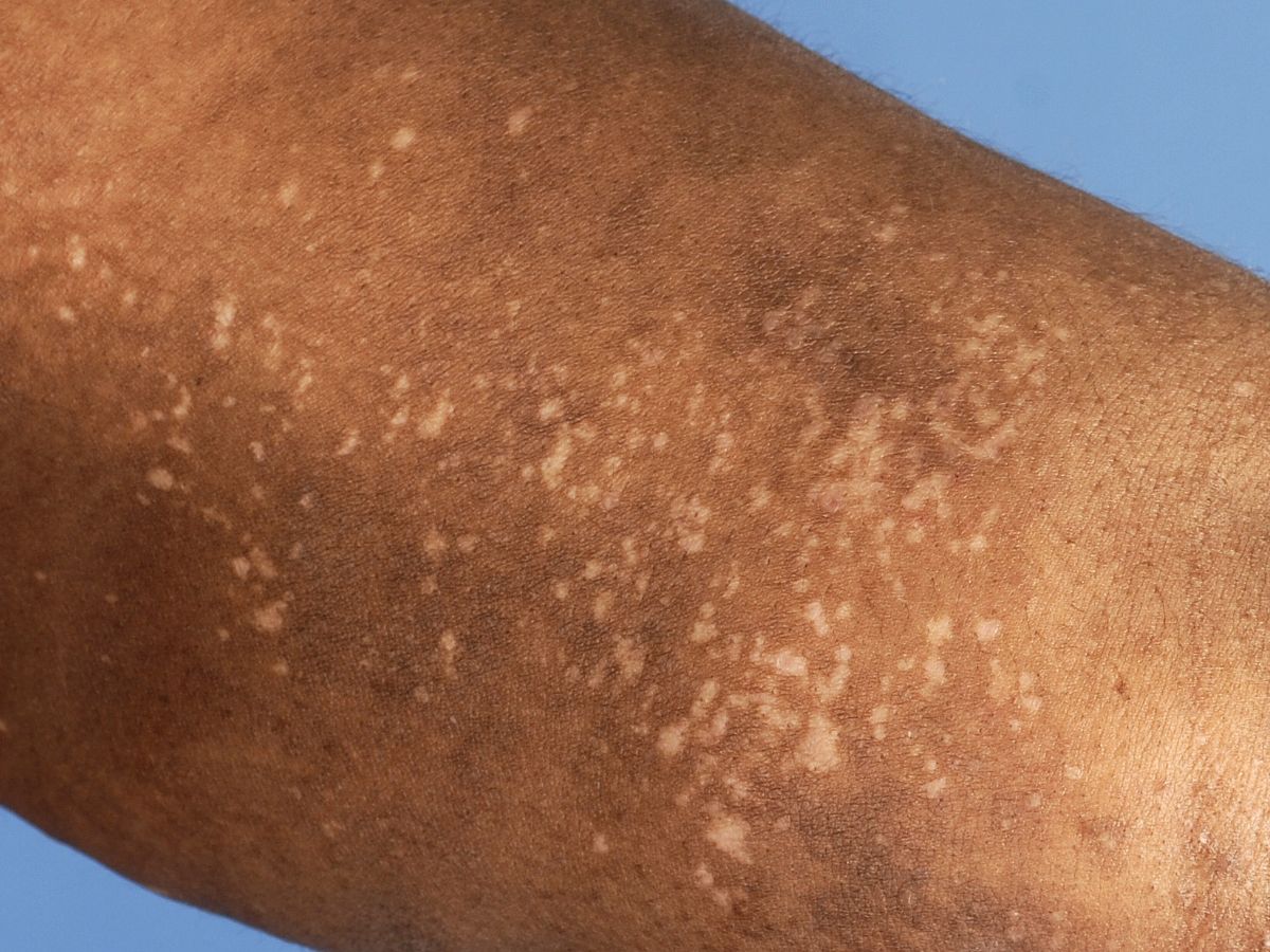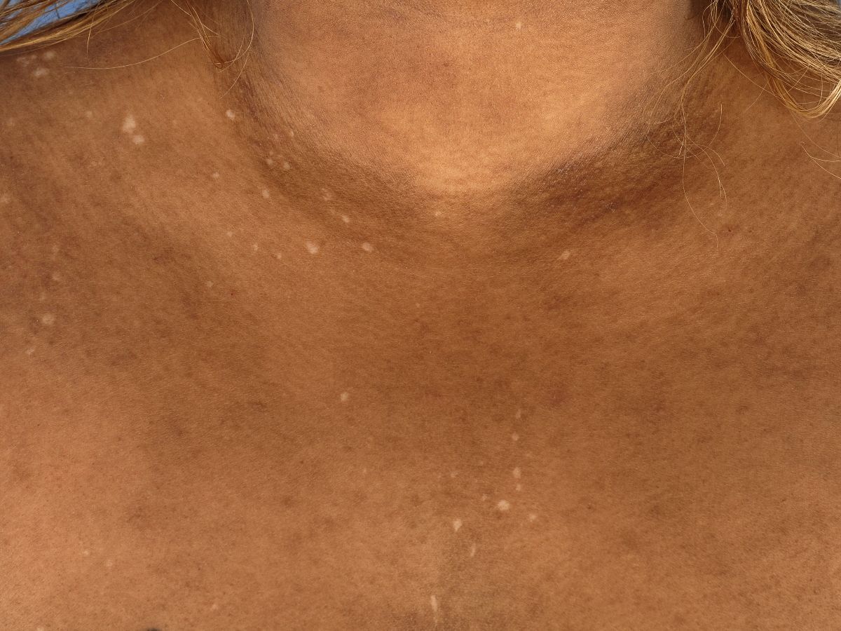 | guttata leukoderma nno idiopatic guttata hypomelanosis leukoderma en confetti confetti macula bij tubereuze sclerose confetti macula bij lichen sclerosus guttata morphea achromic pityriasis lichenoides chronica guttata Darier amyloidosis cutis dyschromica progressieve maculaire hypomelanosis perifolliculaire sclerodermie epidermodysplasia verruciformis acquired epidermodysplasia verruciformis |