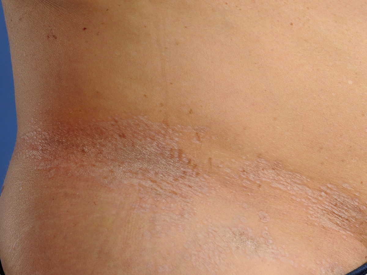 kan ook op de romp voorkomen (extragenitale lichen sclerosus),