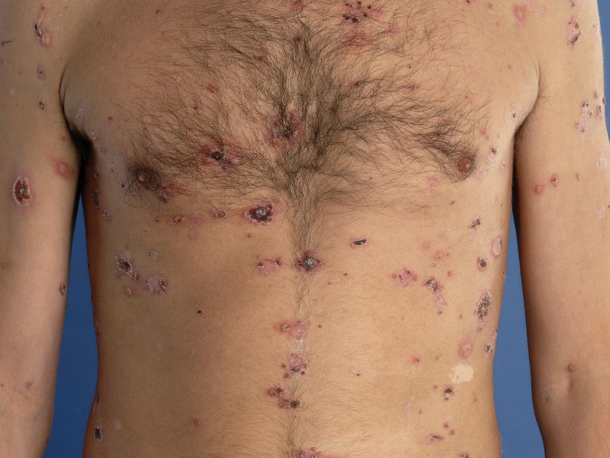 bloedbijmenging. Het kan over het hele lichaam ontstaan (bij kinderen vaak op