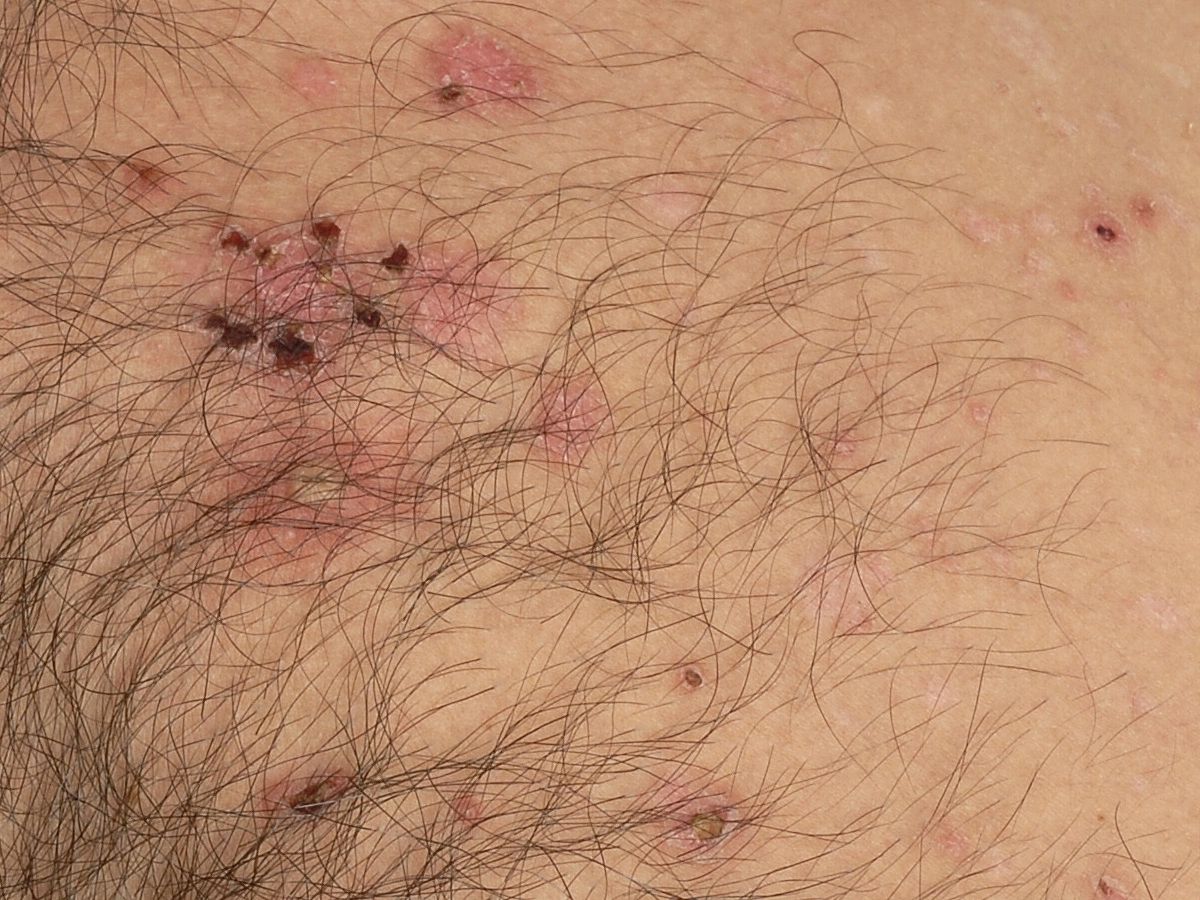 de onderbuik en anogenitaal gebied). De vesikels verschijnen op een normale,