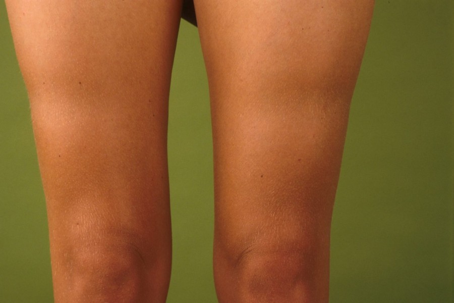 een aandoening waarbij deuken ontstaan symmetrisch op de bovenbenen, aan de