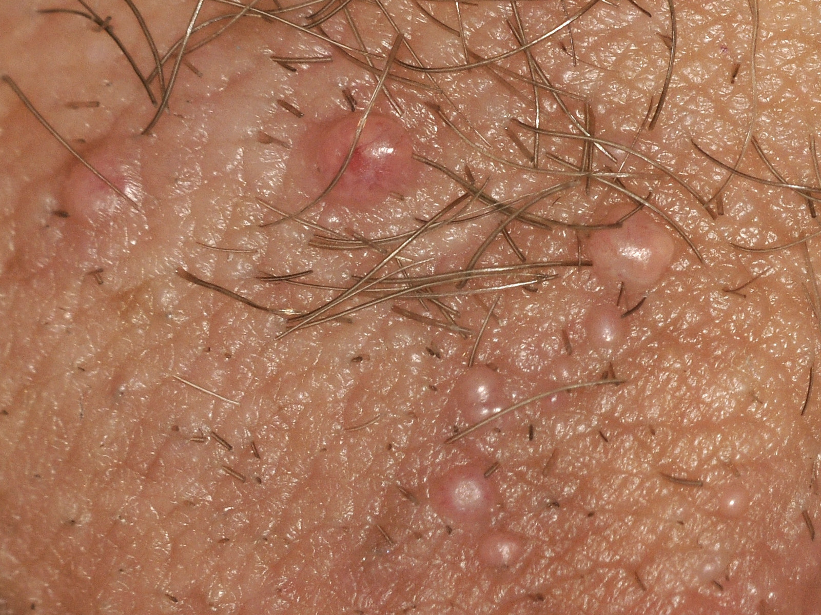 beeld:Multipele doorschijnende vesikels in een gebied met chronisch