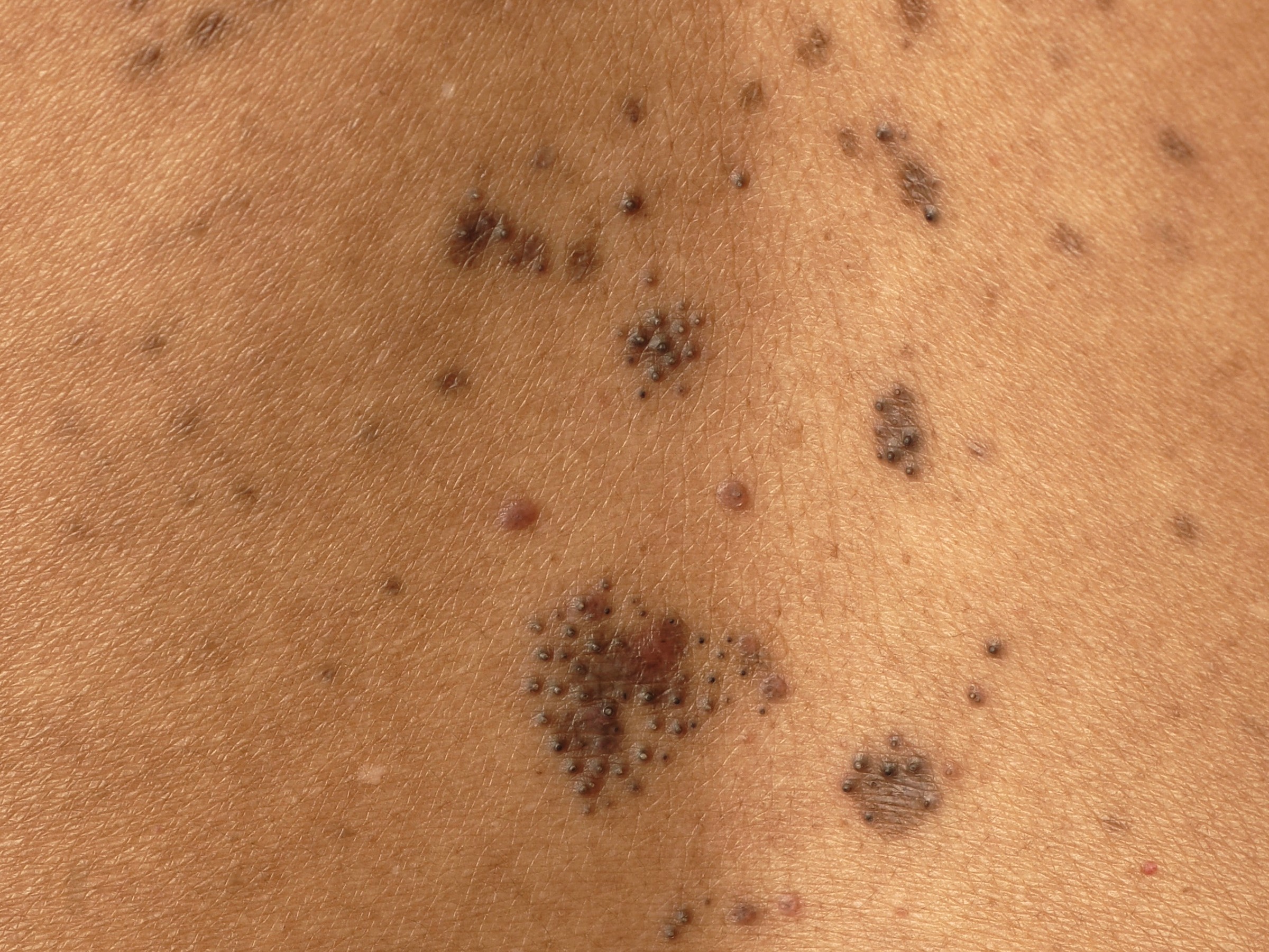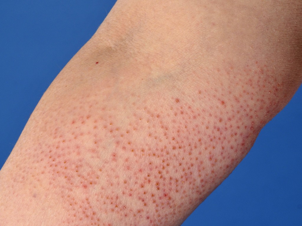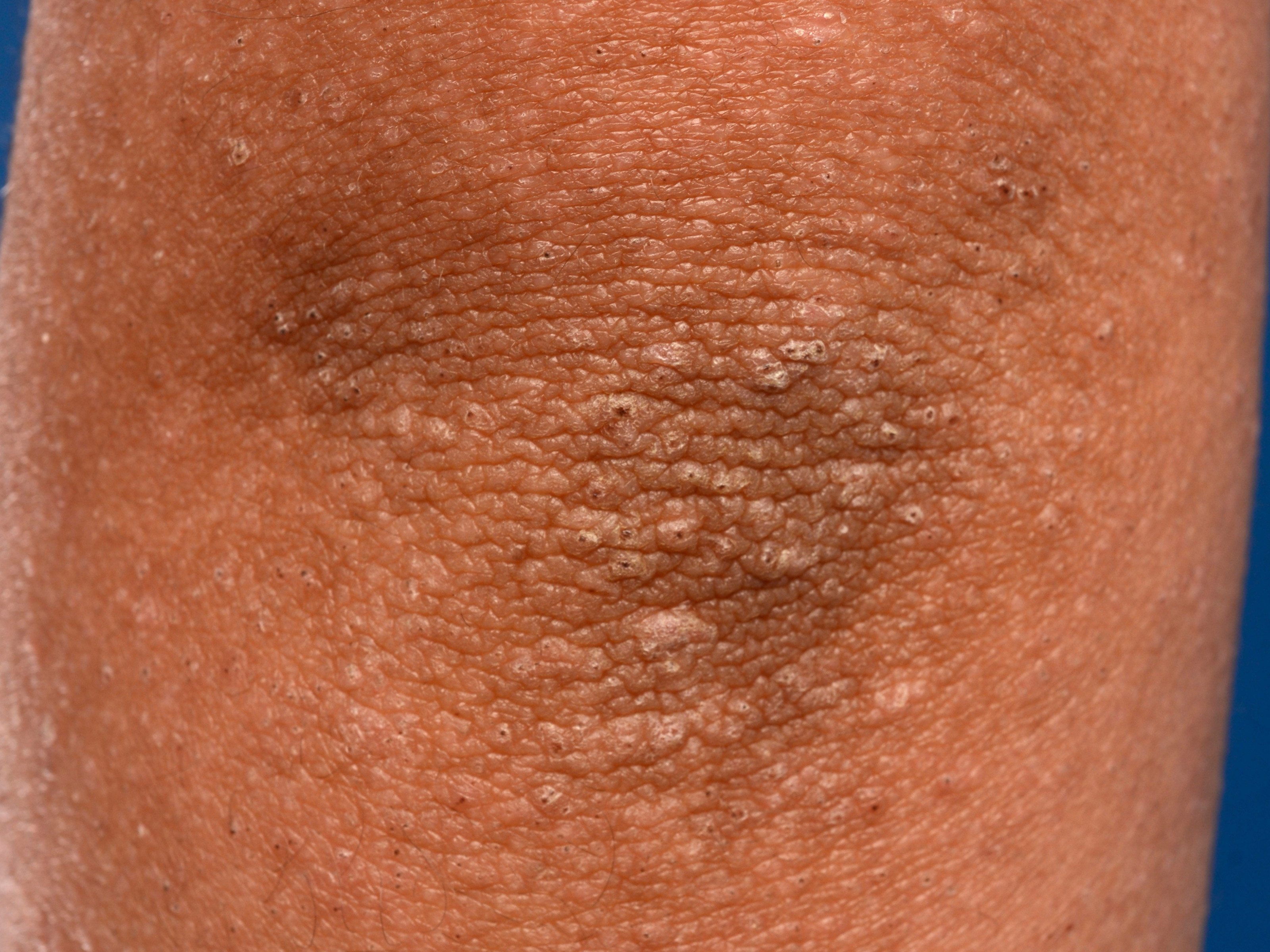 is en later de folliculaire papeltjes met hoornpluggen op de romp.