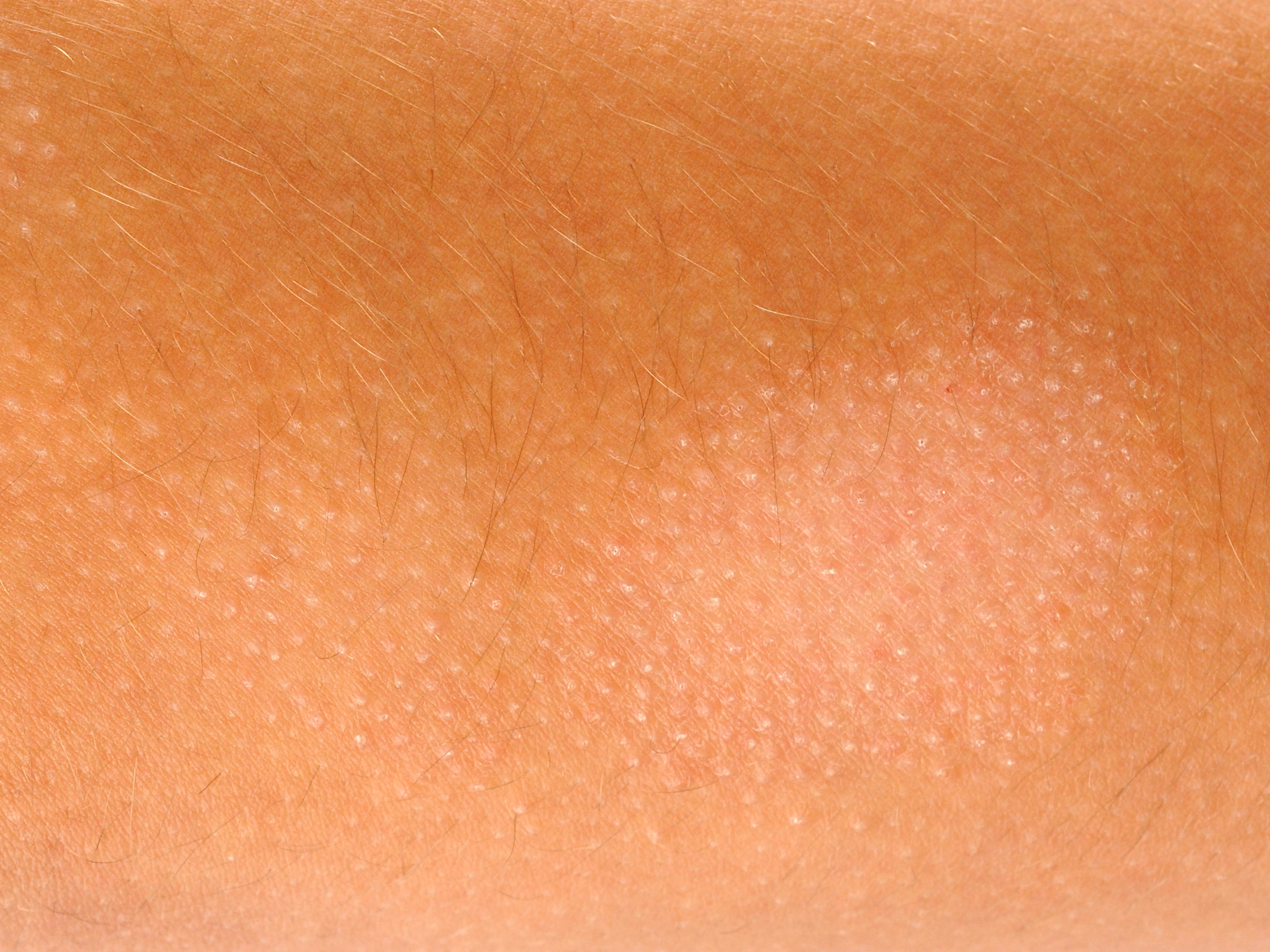 en heeft een gegroepeerde distributie. Keratosis pilaris komt vaker voor, ontwikkelt