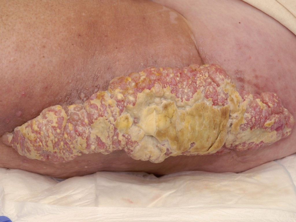 ontstaan. De overliggende huid wordt atrofisch en gaat kapot, ulcera kunnen