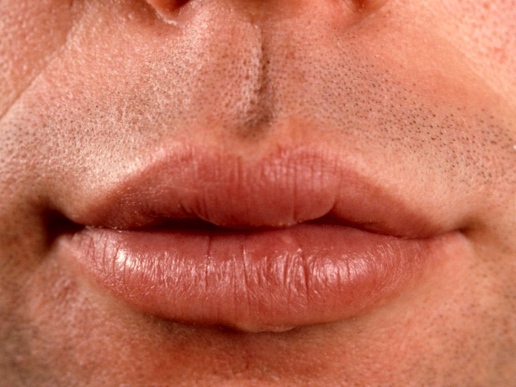 van boven- of onderlip (75%), één of beide wangen (50%). Soms is er ook een