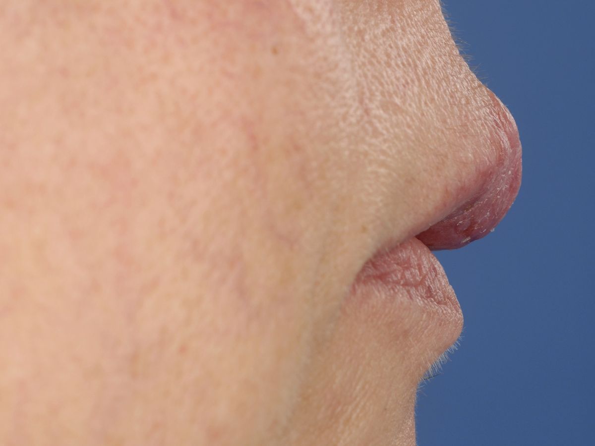 er fissuurtjes ontstaan van de lippen en rood-bruine verkleuring en schilfering