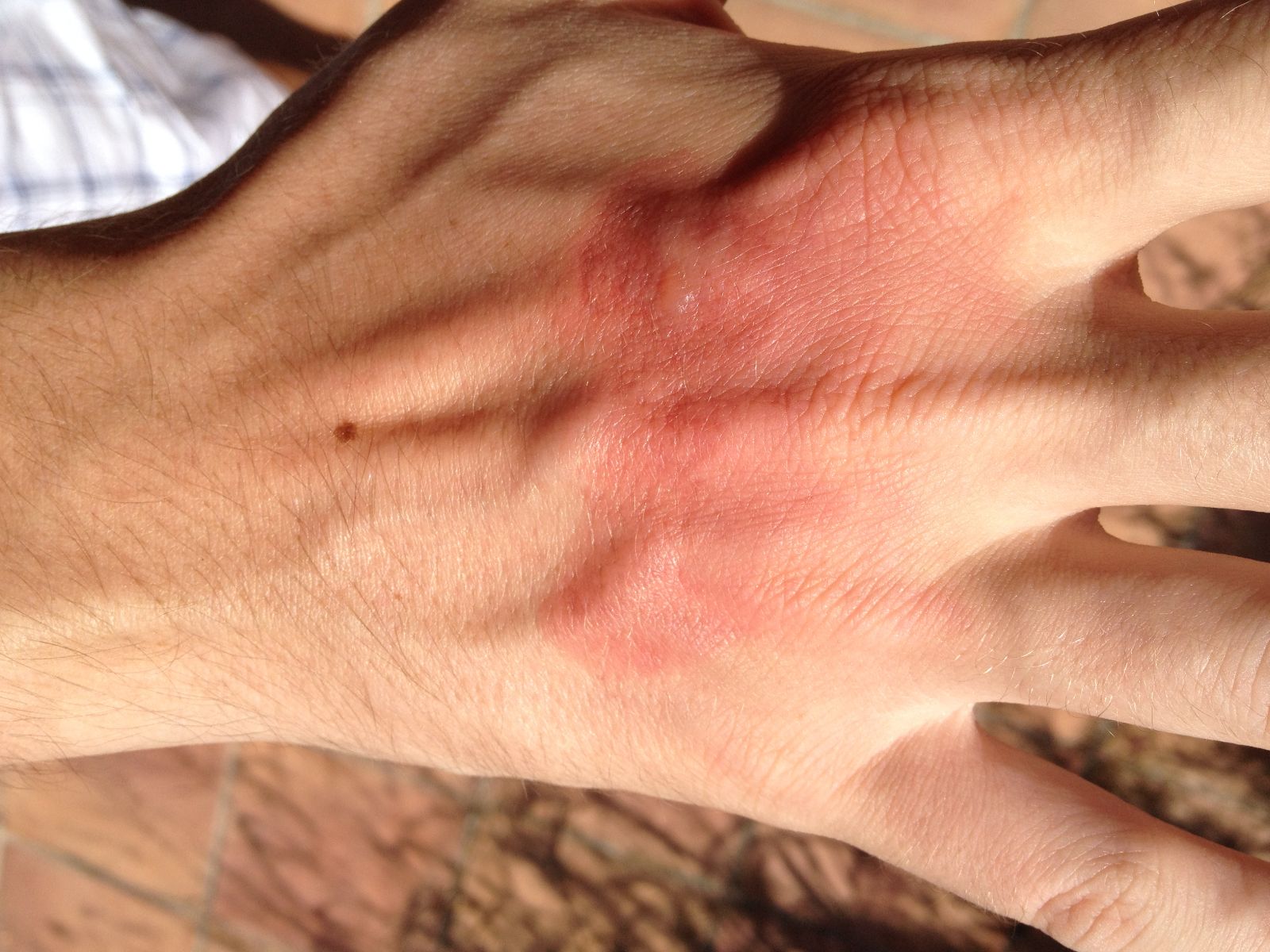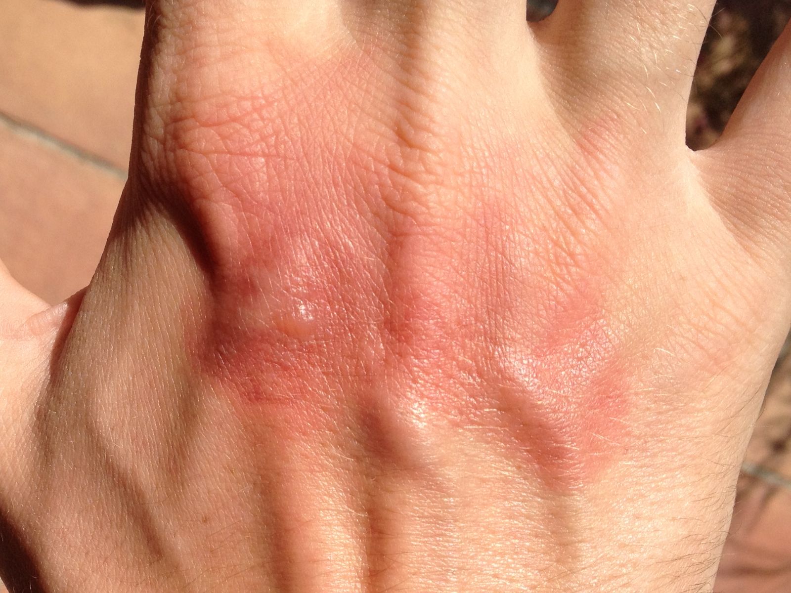 eczeem, en blaren. Ook op de handen bij het uitpersen van limoen voor het bereiden