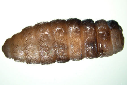 met een open wond kan als gastheer dienen. De larven ontwikkelen zich binnen