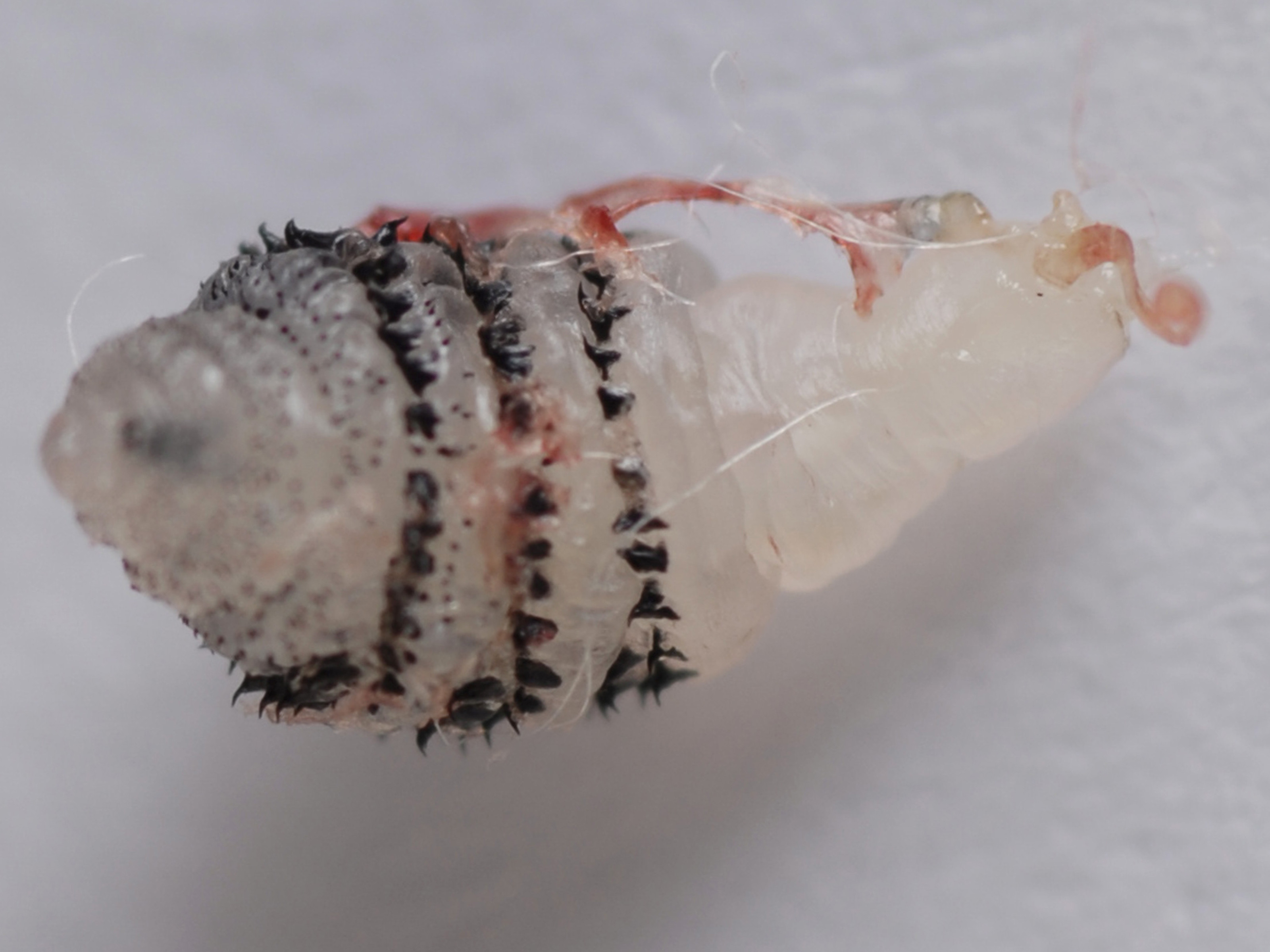 de larve vast te pakken met een pincet en langzaam er uit te trekken. Voorzichtig