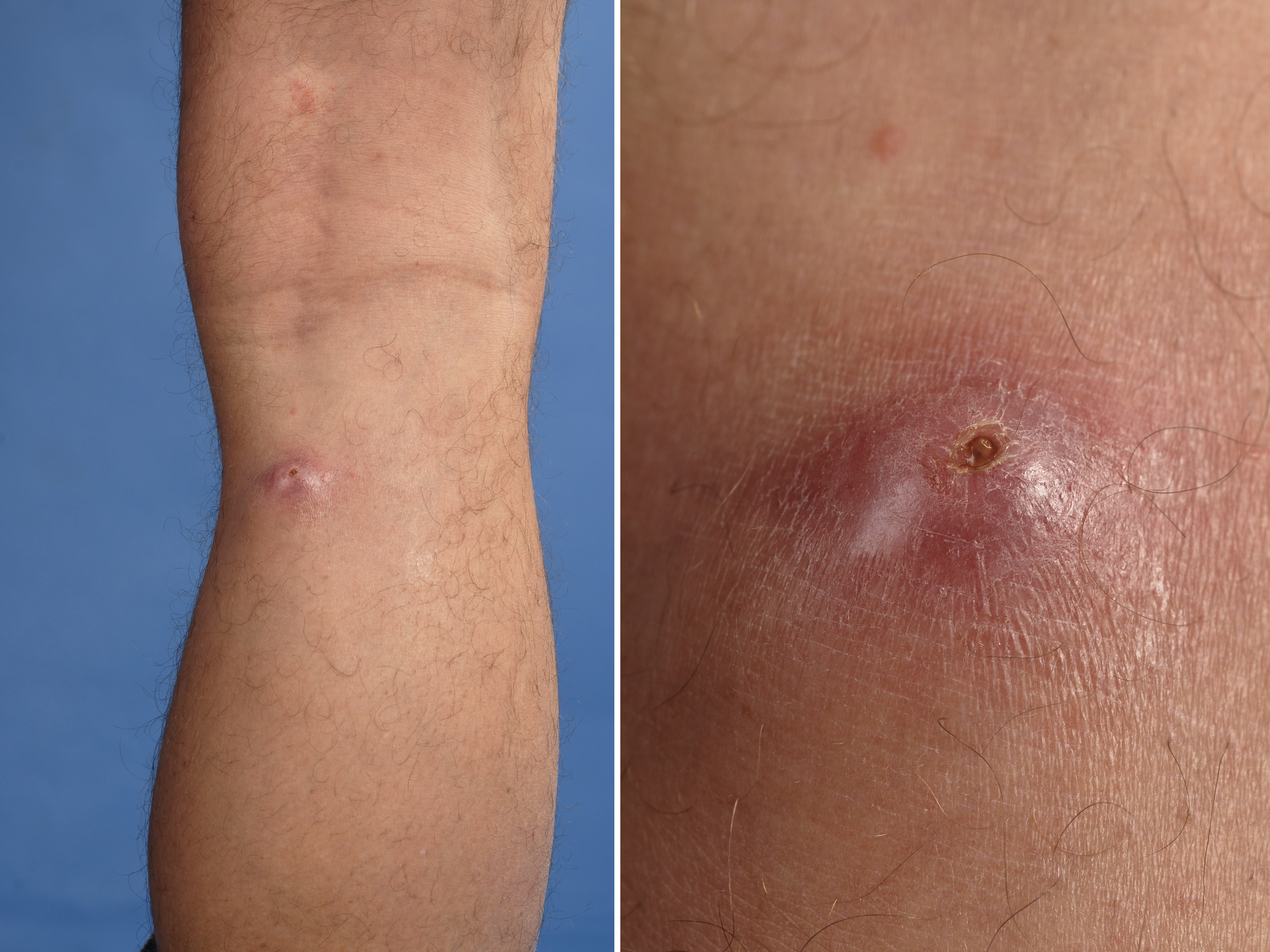maakt een ontwikkeling door in het subcutane weefsel. Ter plaatse ontstaat een